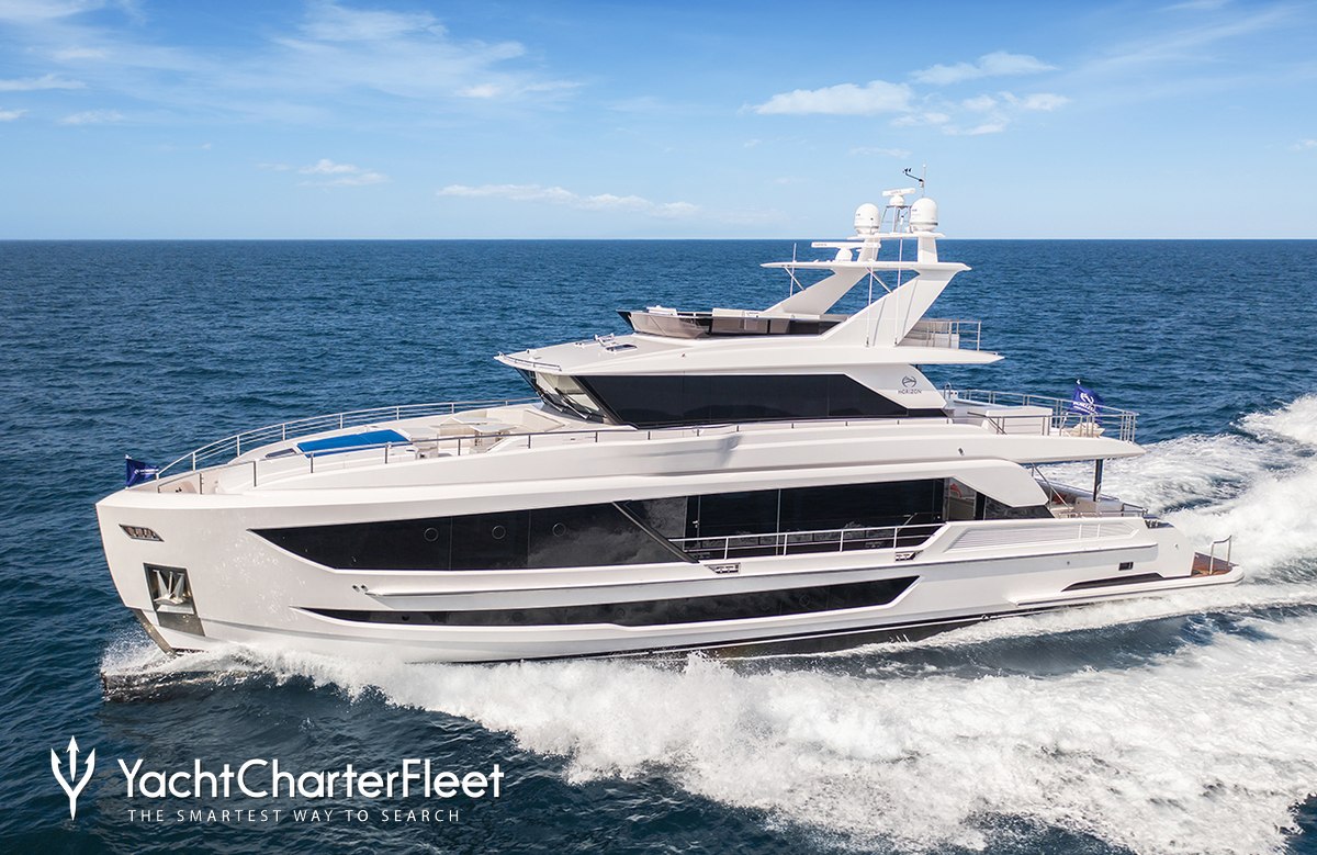 The luxury motor yacht Horizon FD100 /912 is displayed on this page merely for informational purposes and she is not necessarily available for yacht charter or for sale, nor is she represented or marketed in anyway by Trident Media Ltd. This document is not contractual. The yacht particulars displayed in the results above are displayed in good faith and whilst believed to be correct are not guaranteed, please check with your yacht charter broker. Trident Media Ltd does not warrant or assume any legal liability or responsibility for the accuracy, completeness, or usefulness of any information and/or images displayed as they may not be current. All boat information is subject to change without prior notice and is without warranty.