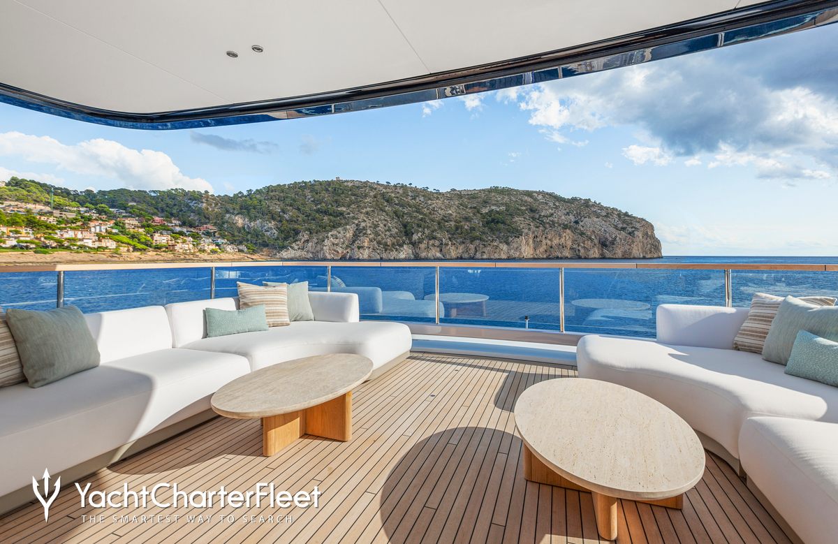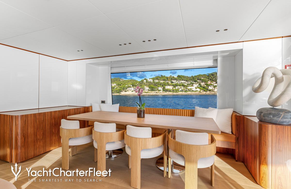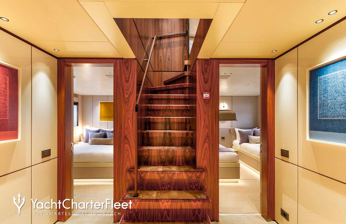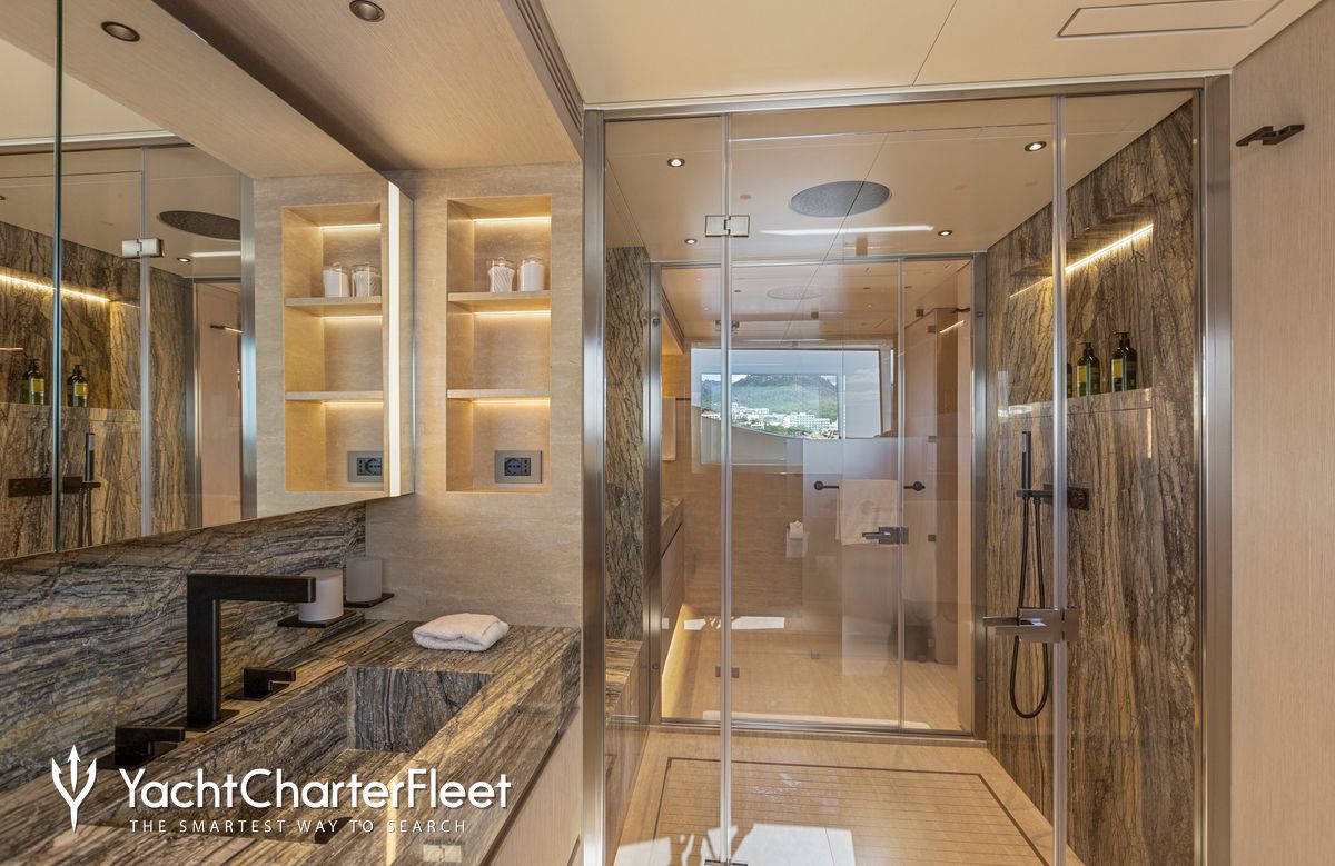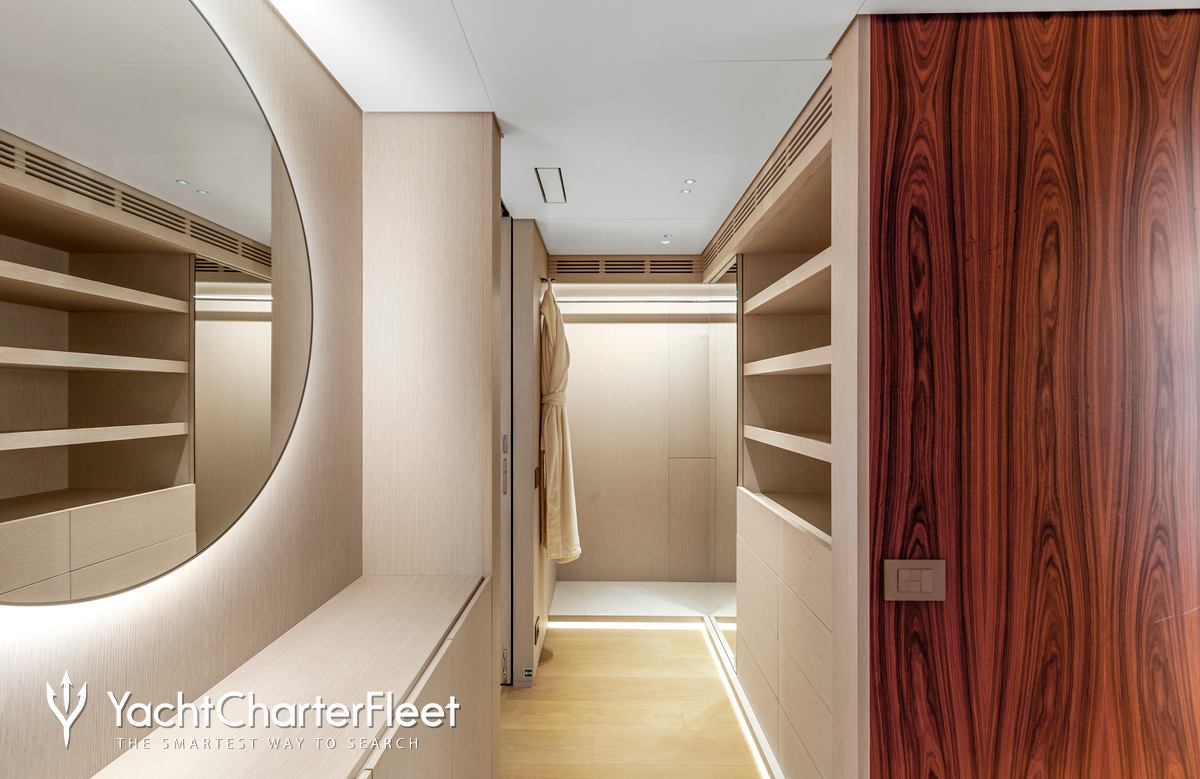 Built in 2025, Liv Love offers guest accommodation for up to 11 guests in 5 suites comprising a master suite located on the main deck, two VIP cabins and one double cabin. The supremely spacious full beam master suite incorporates its own study and dressing room as well as a his and her bathroom. The bed configuration includes 1 convertible. She is also capable of carrying up to 10 crew onboard to ensure a relaxed luxury yacht charter experience.