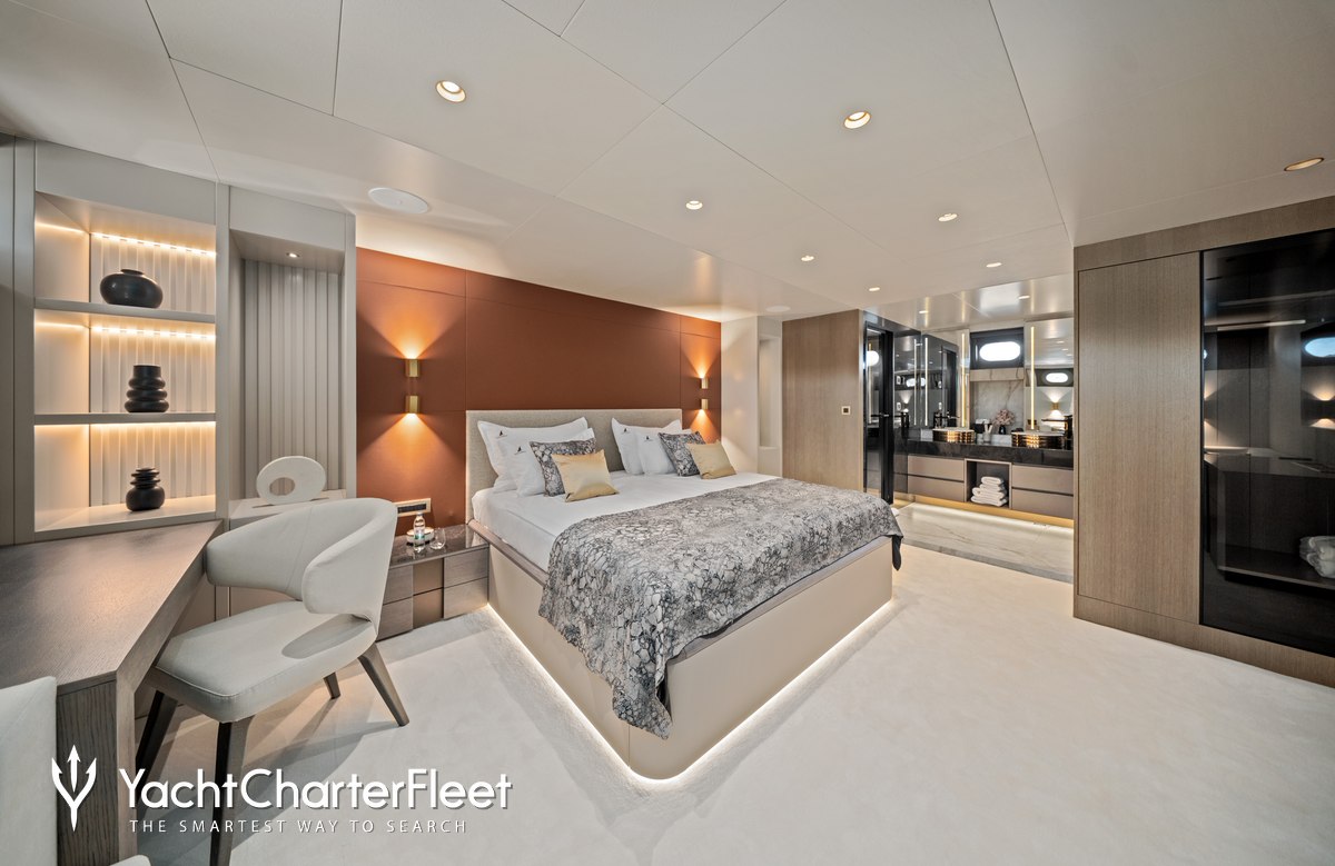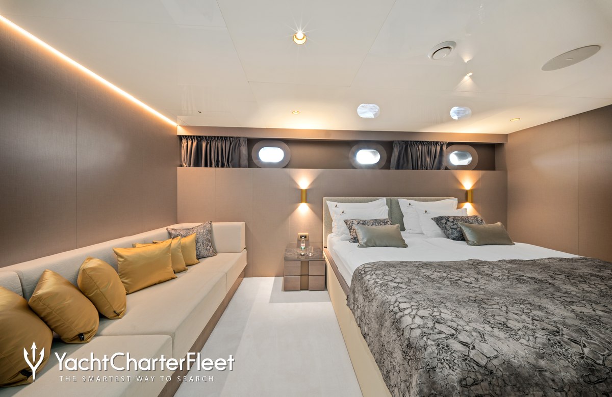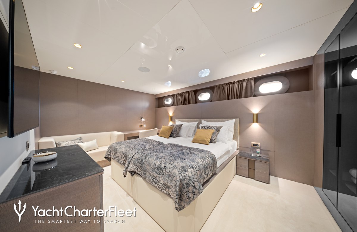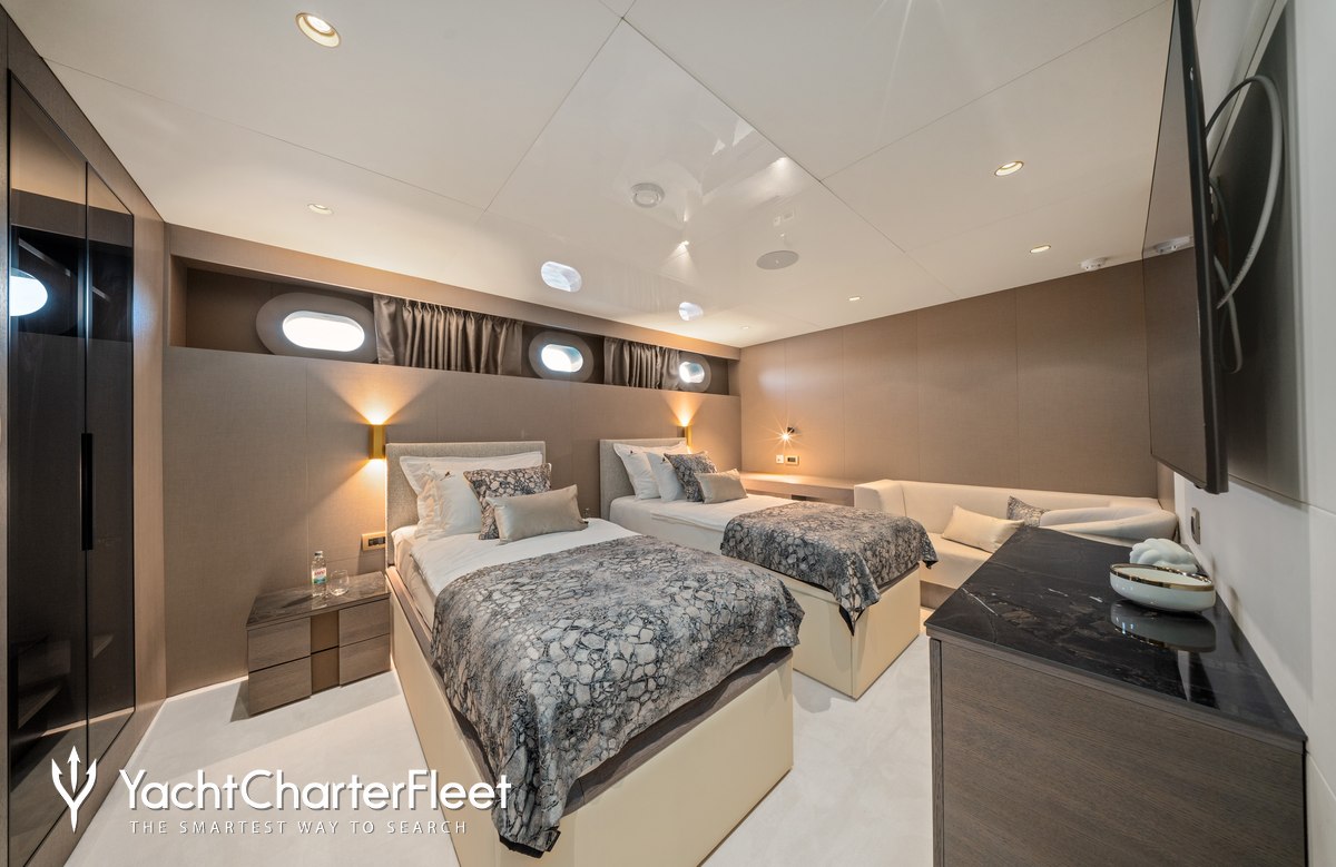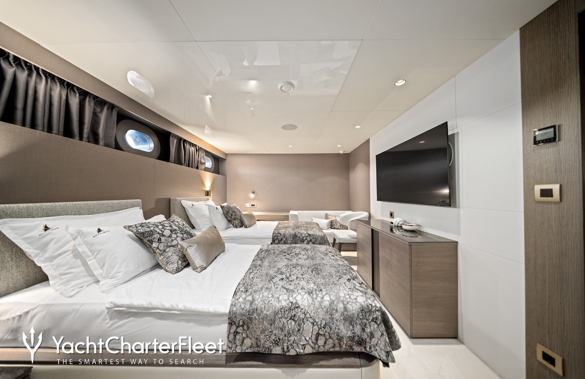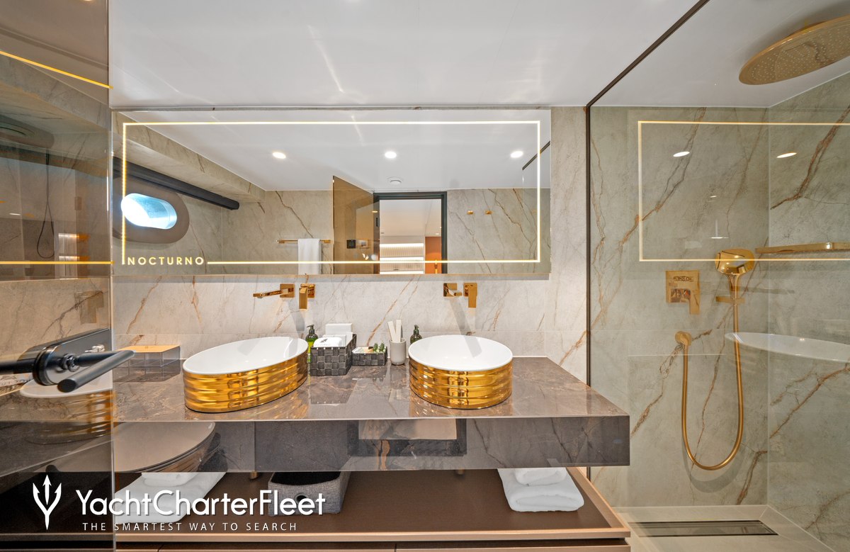 Built in 2023, Nocturno offers guest accommodation for up to 12 guests in 6 suites comprising a master suite, one VIP cabin, two double cabins and two cabins that can operate as twins or doubles. She is also capable of carrying up to 8 crew onboard to ensure a relaxed luxury yacht charter experience.