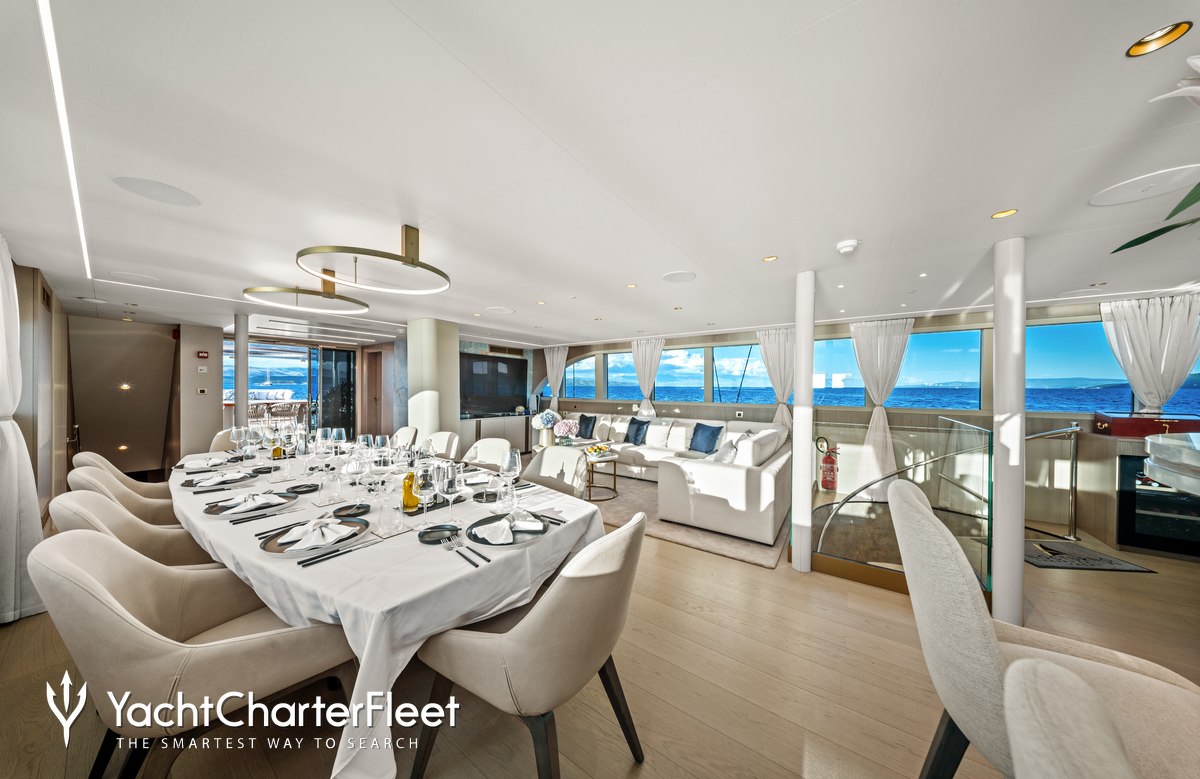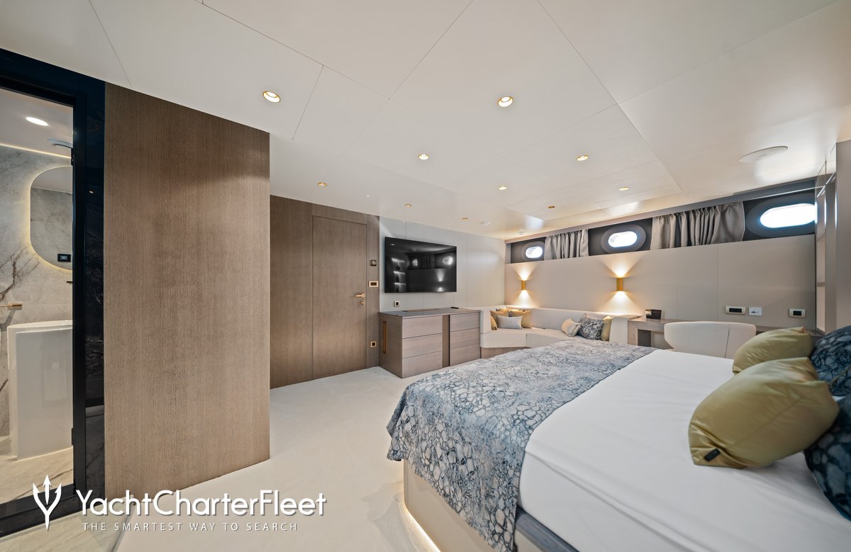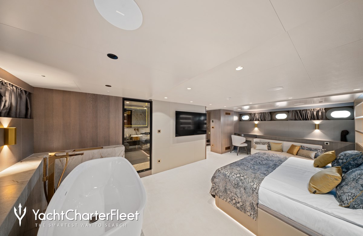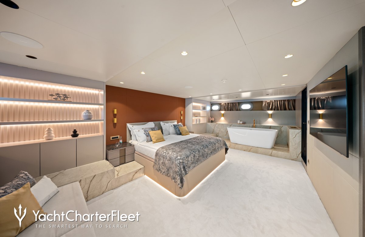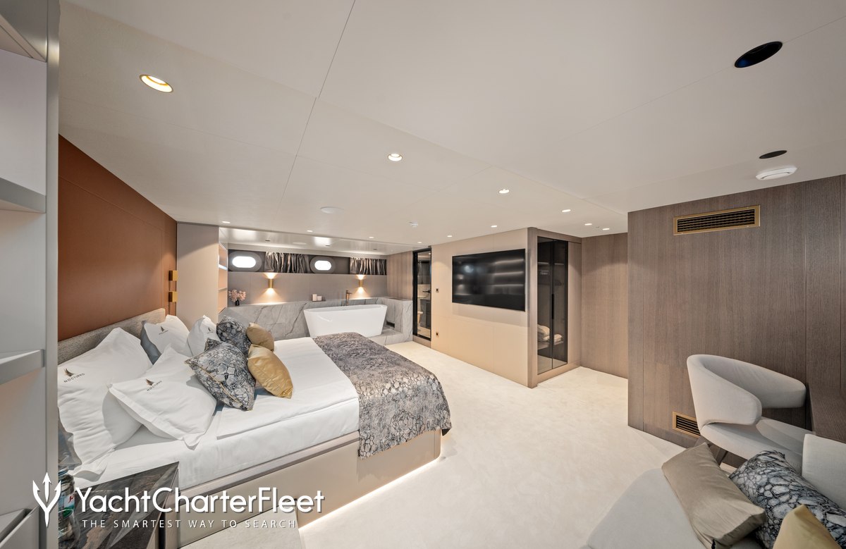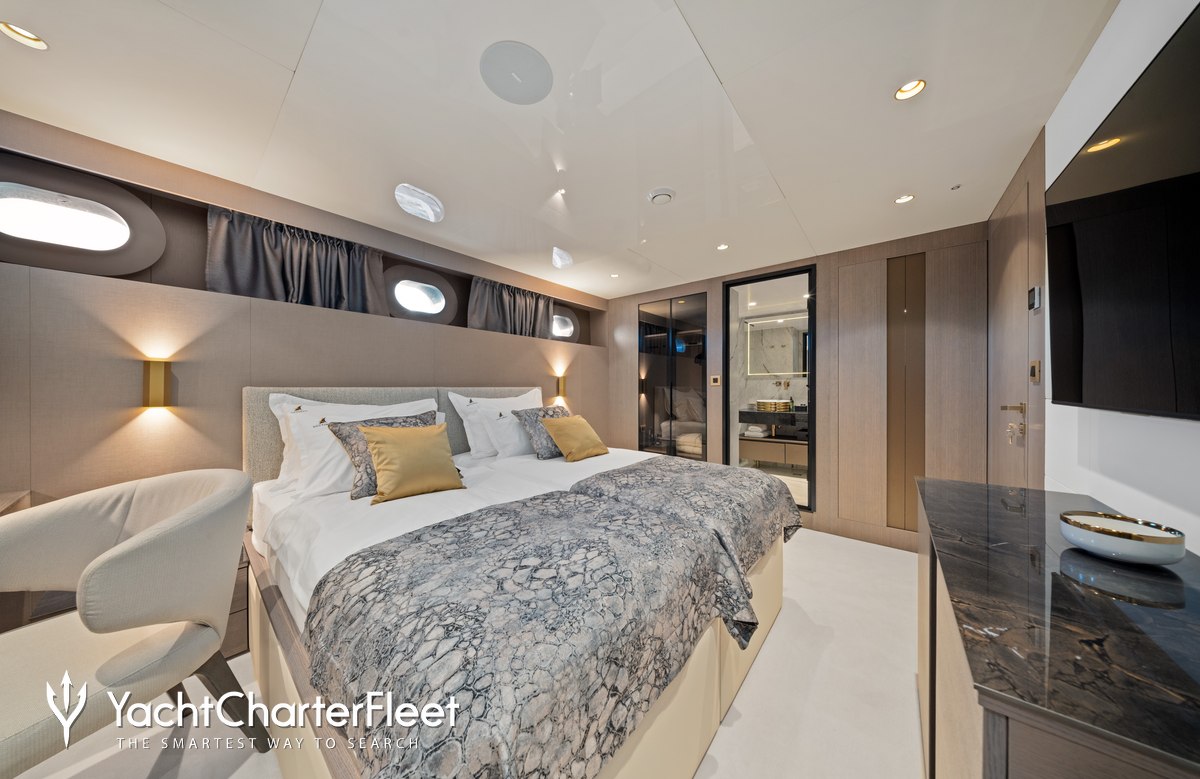 Built in 2023, Nocturno offers guest accommodation for up to 12 guests in 6 suites comprising a master suite, one VIP cabin, two double cabins and two cabins that can operate as twins or doubles. She is also capable of carrying up to 8 crew onboard to ensure a relaxed luxury yacht charter experience.