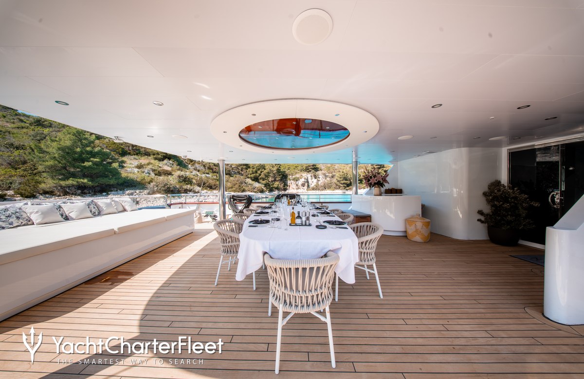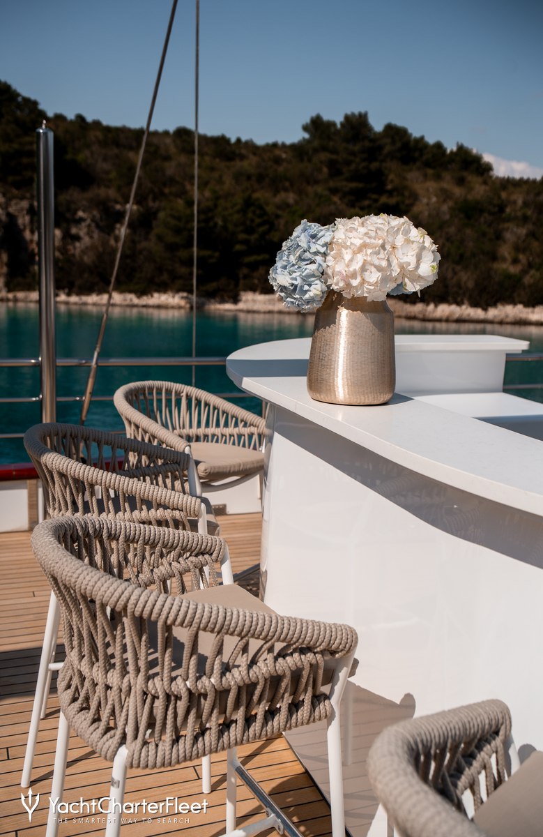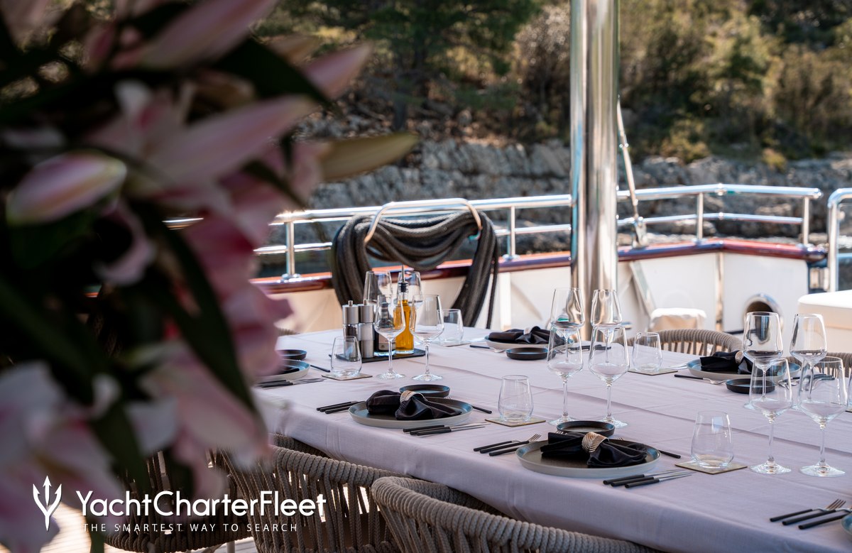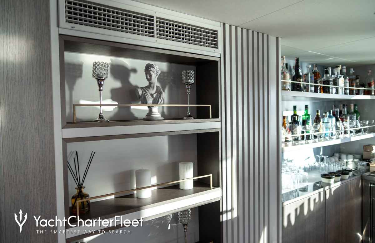 Nocturno benefits from some excellent features to improve your charter such as Wi-Fi connectivity, allowing you to stay connected at all times, should you wish. Guests will experience complete comfort while chartering thanks to air conditioning.