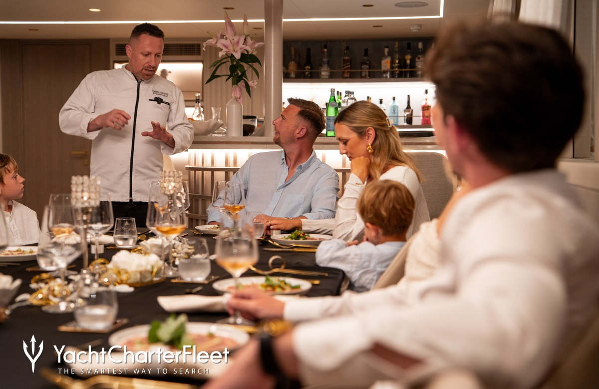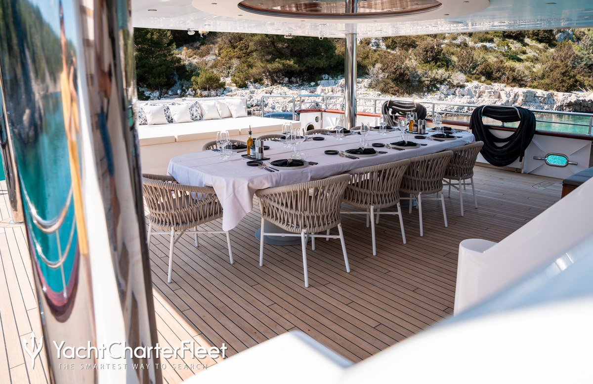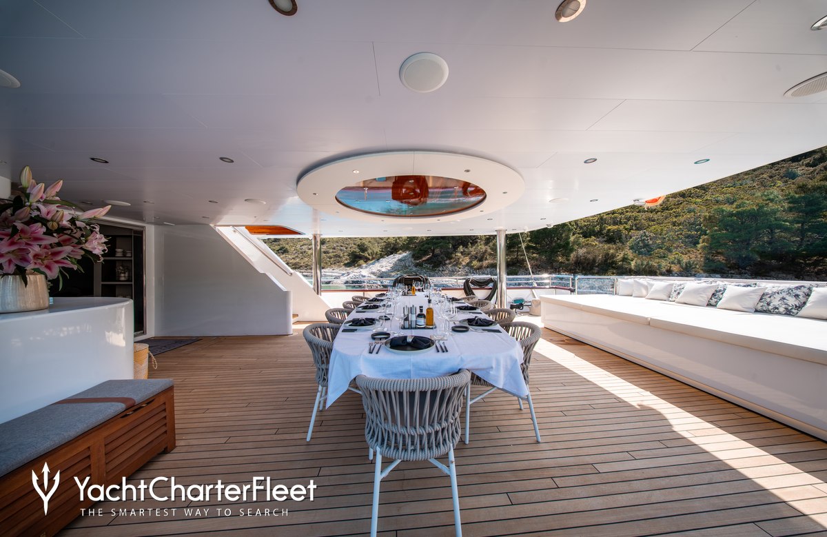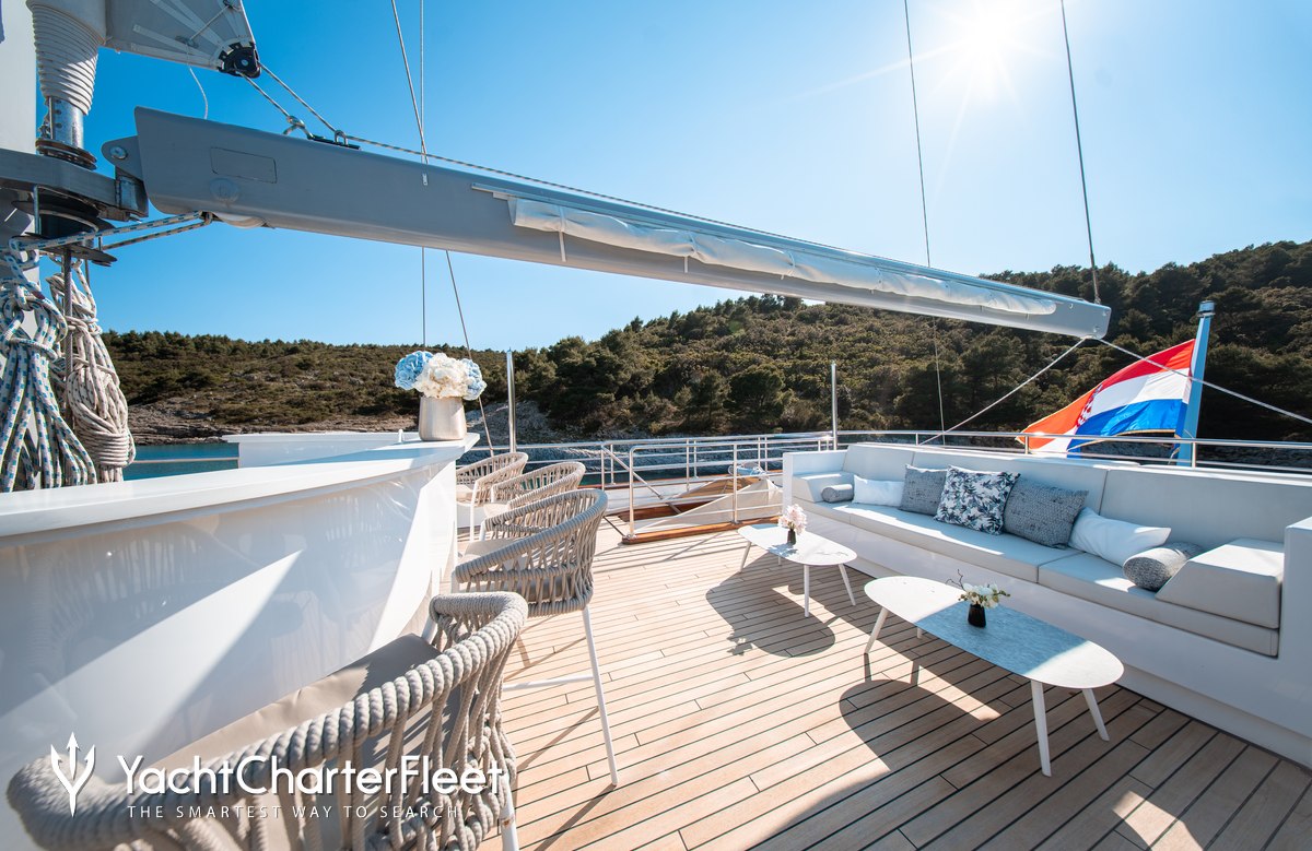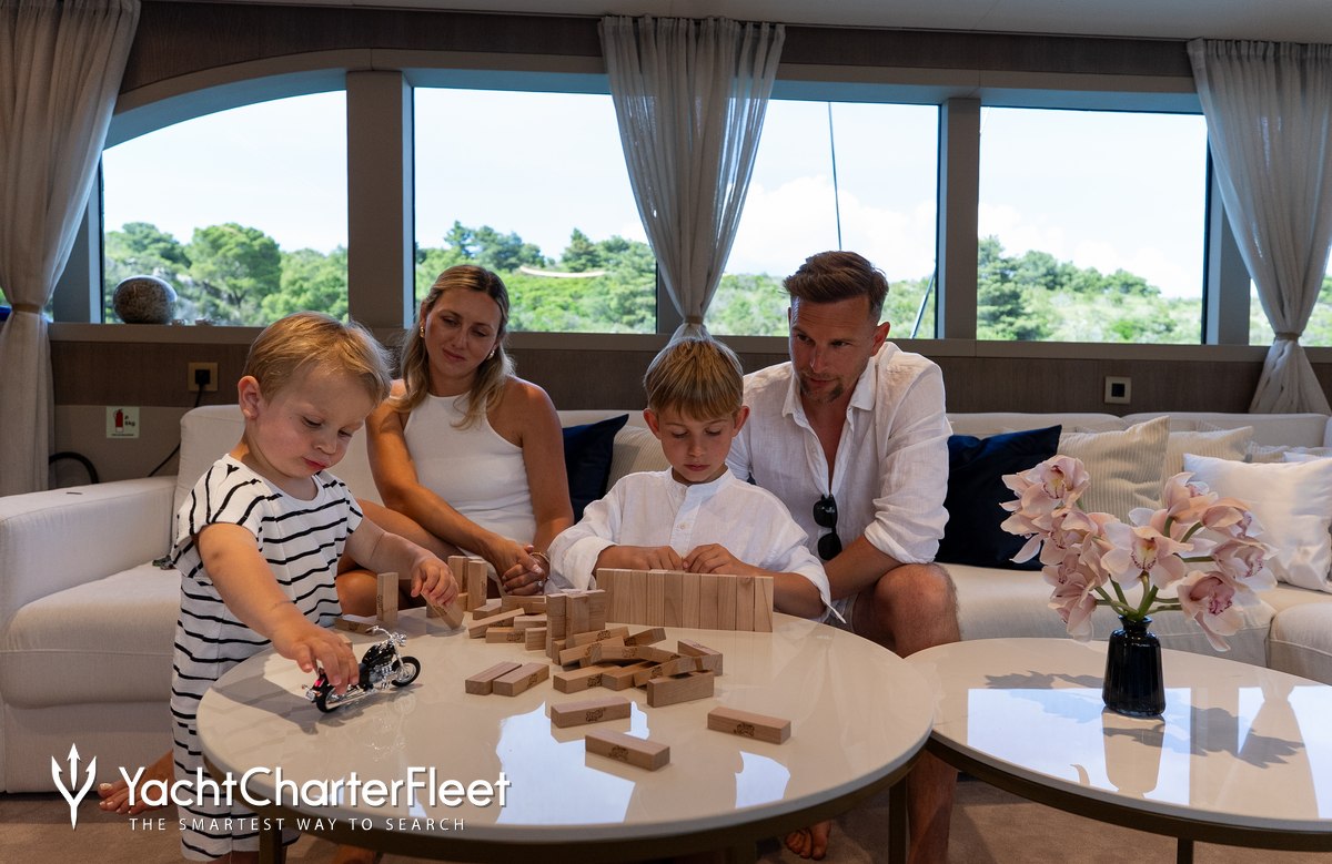 Nocturno benefits from some excellent features to improve your charter such as Wi-Fi connectivity, allowing you to stay connected at all times, should you wish. Guests will experience complete comfort while chartering thanks to air conditioning.