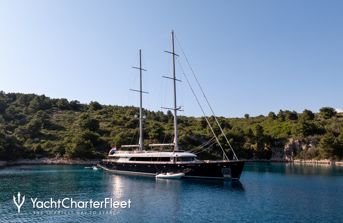 Nocturno and her crew are available for charter this winter for cruising within . She is already accepting bookings this summer for cruising in the Mediterranean.