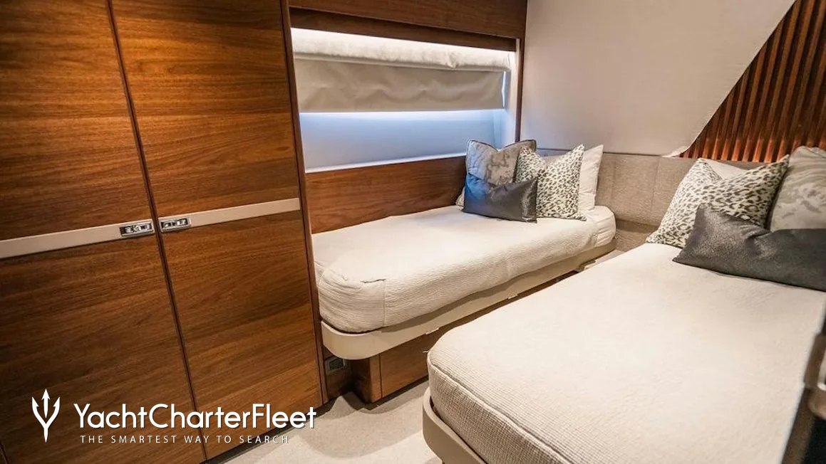 Gypzy offers guest accommodation for up to 8 guests in 4 suites comprising a master suite, one VIP cabin and one cabin that can operate as twin or double. The bed configuration includes 1 double.