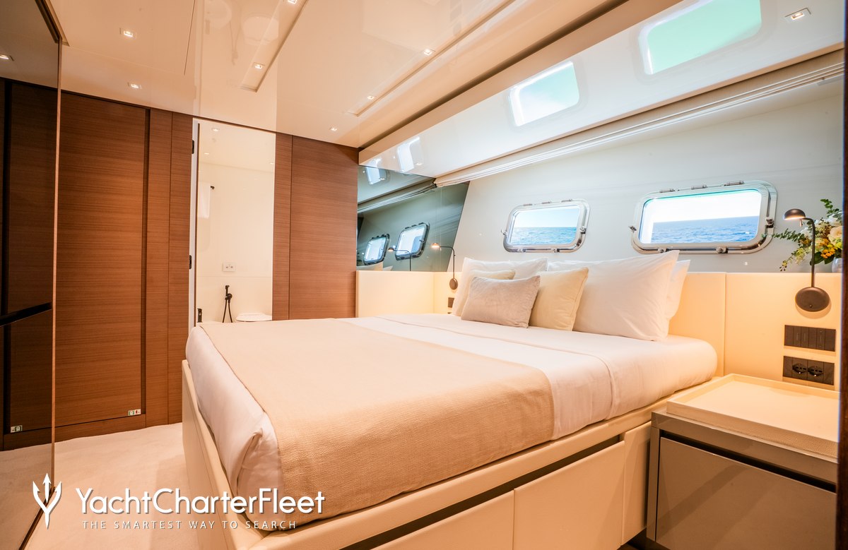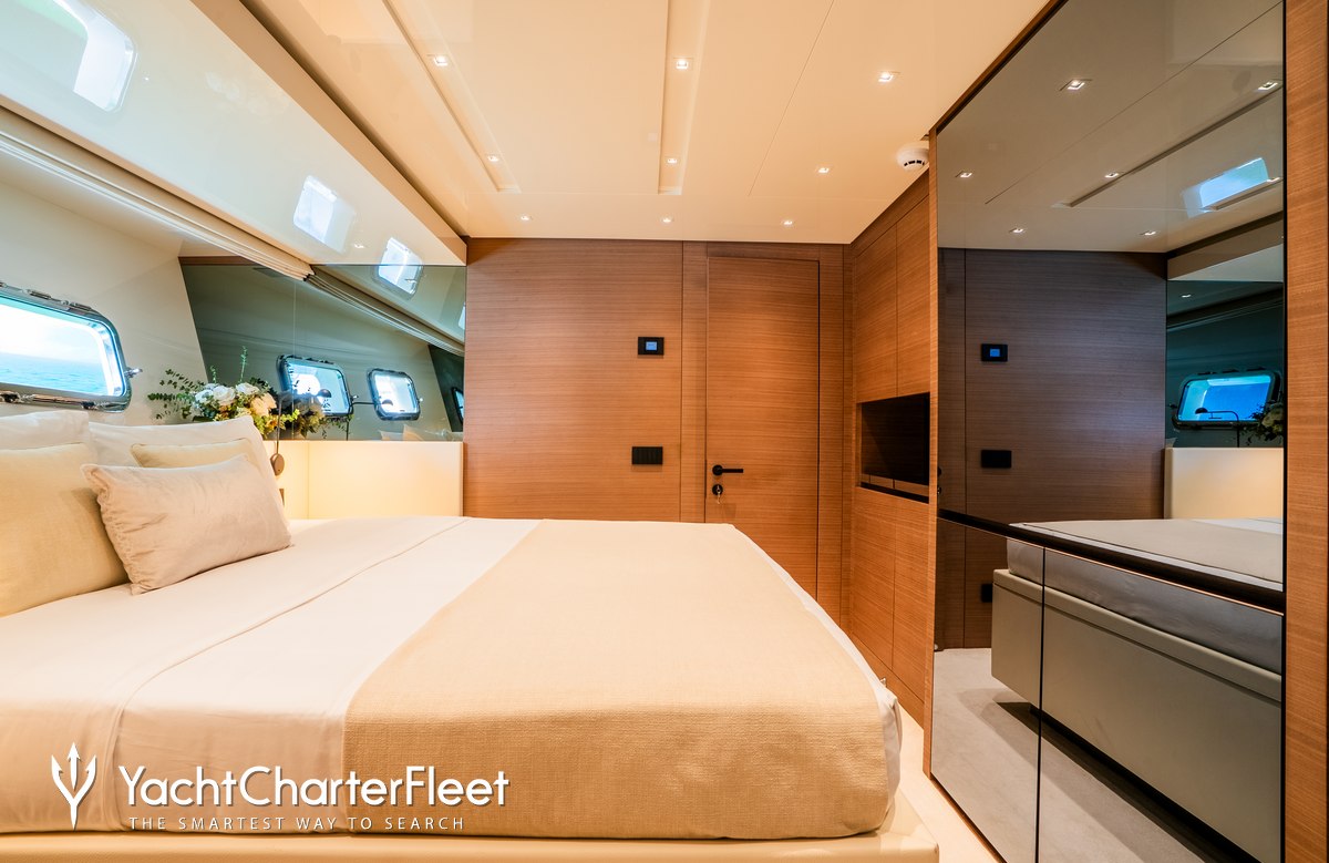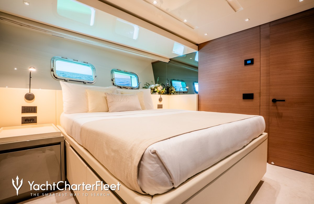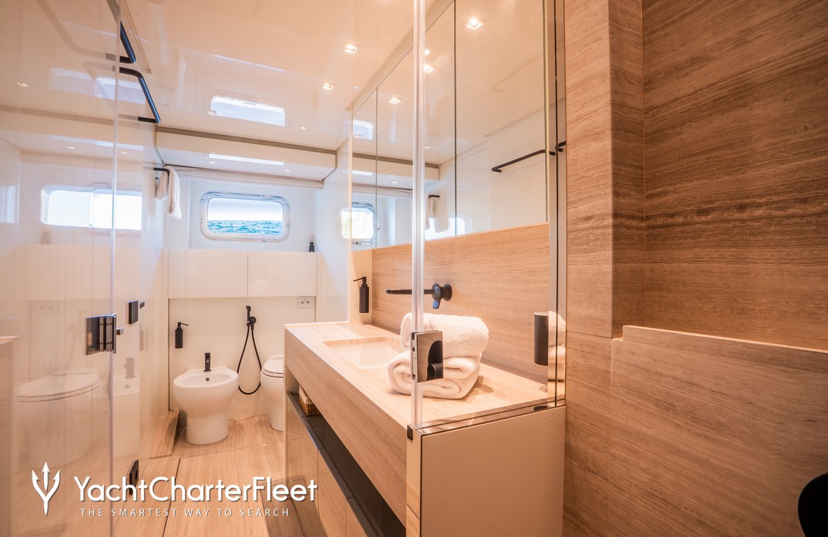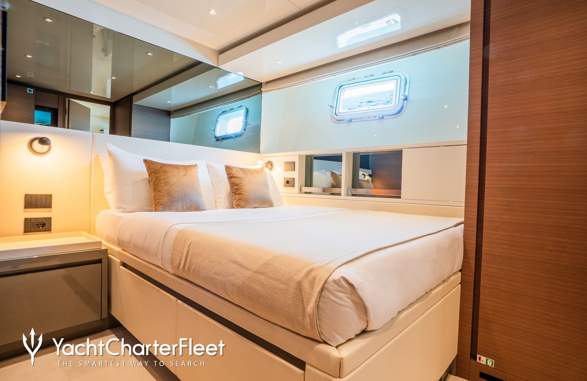 Astrimare II offers guest accommodation for up to 8 guests in 4 suites comprising a master suite, one VIP cabin, one double cabin and one twin cabin. She is also capable of carrying up to 4 crew onboard to ensure a relaxed luxury yacht charter experience.