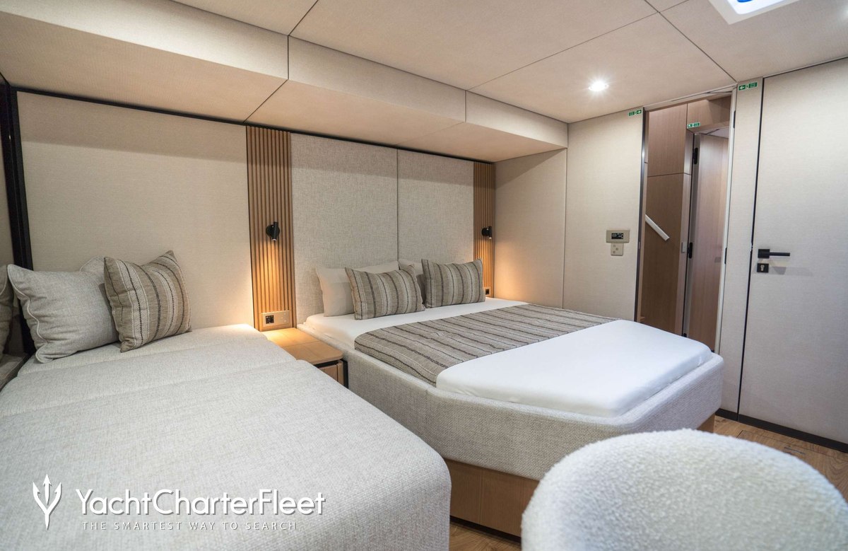 Built in 2025, Ankawer VI offers guest accommodation for up to 8 guests in 4 suites comprising four double cabins. There are 3 beds in total, including 1 king and 2 doubles. She is also capable of carrying up to 4 crew onboard to ensure a relaxed luxury yacht charter experience.