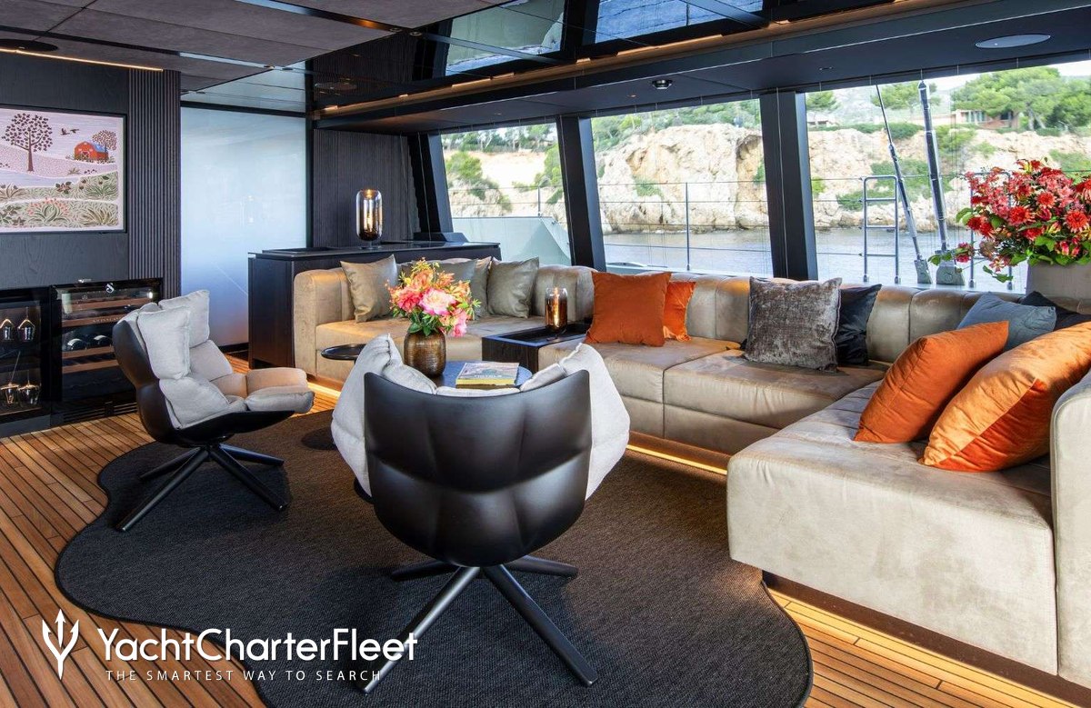 A Plan benefits from some excellent features to improve your charter such as Wi-Fi connectivity, allowing you to stay connected at all times, should you wish. Guests will experience complete comfort while chartering thanks to air conditioning.
