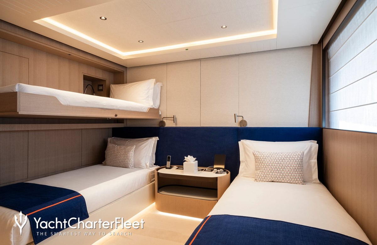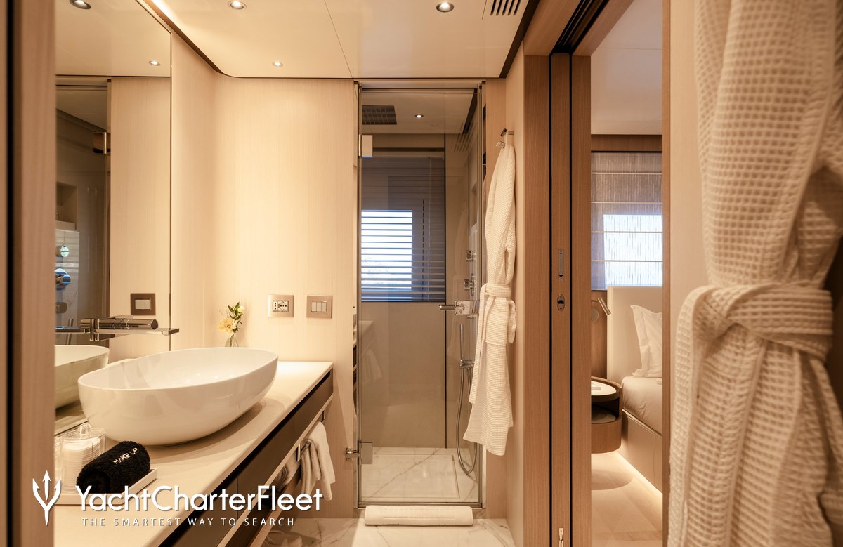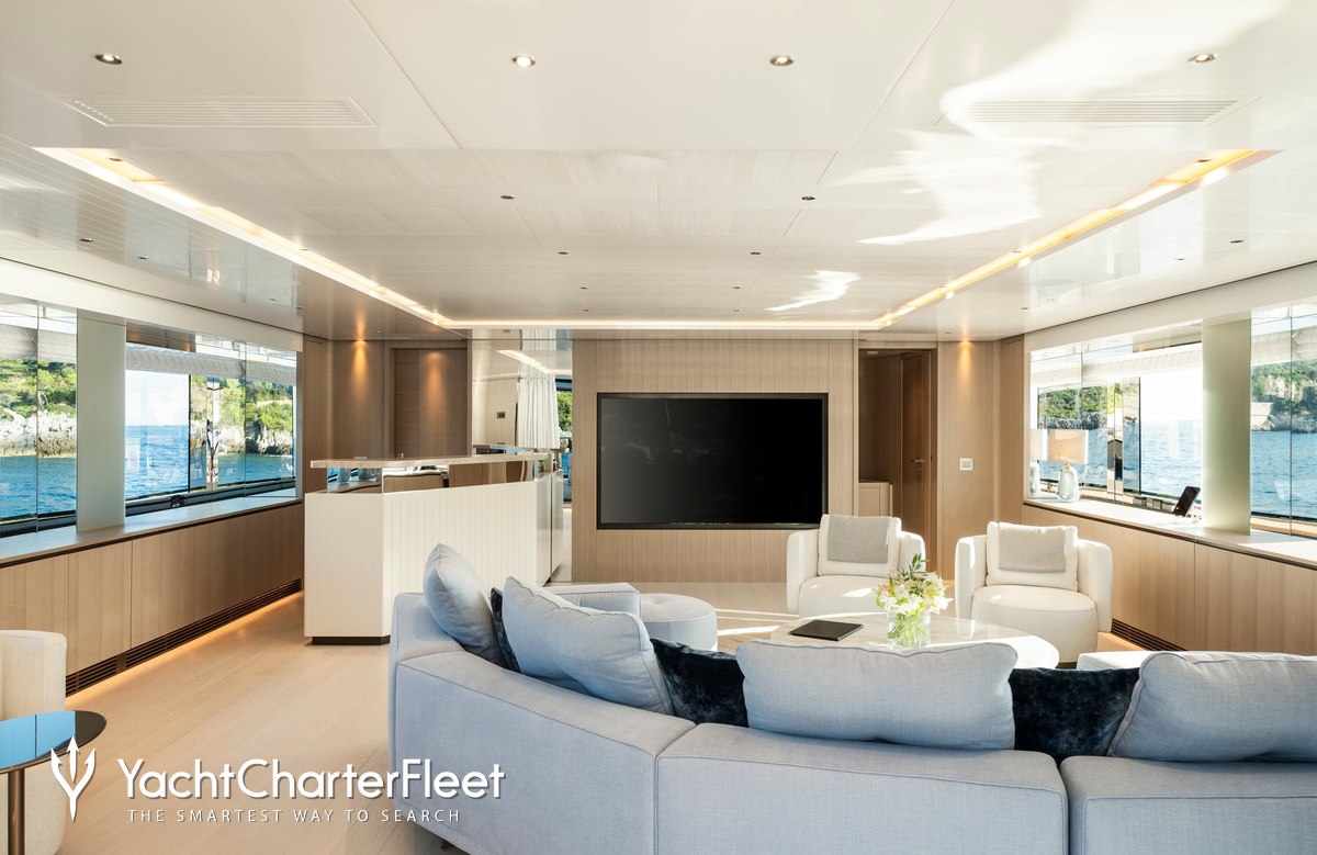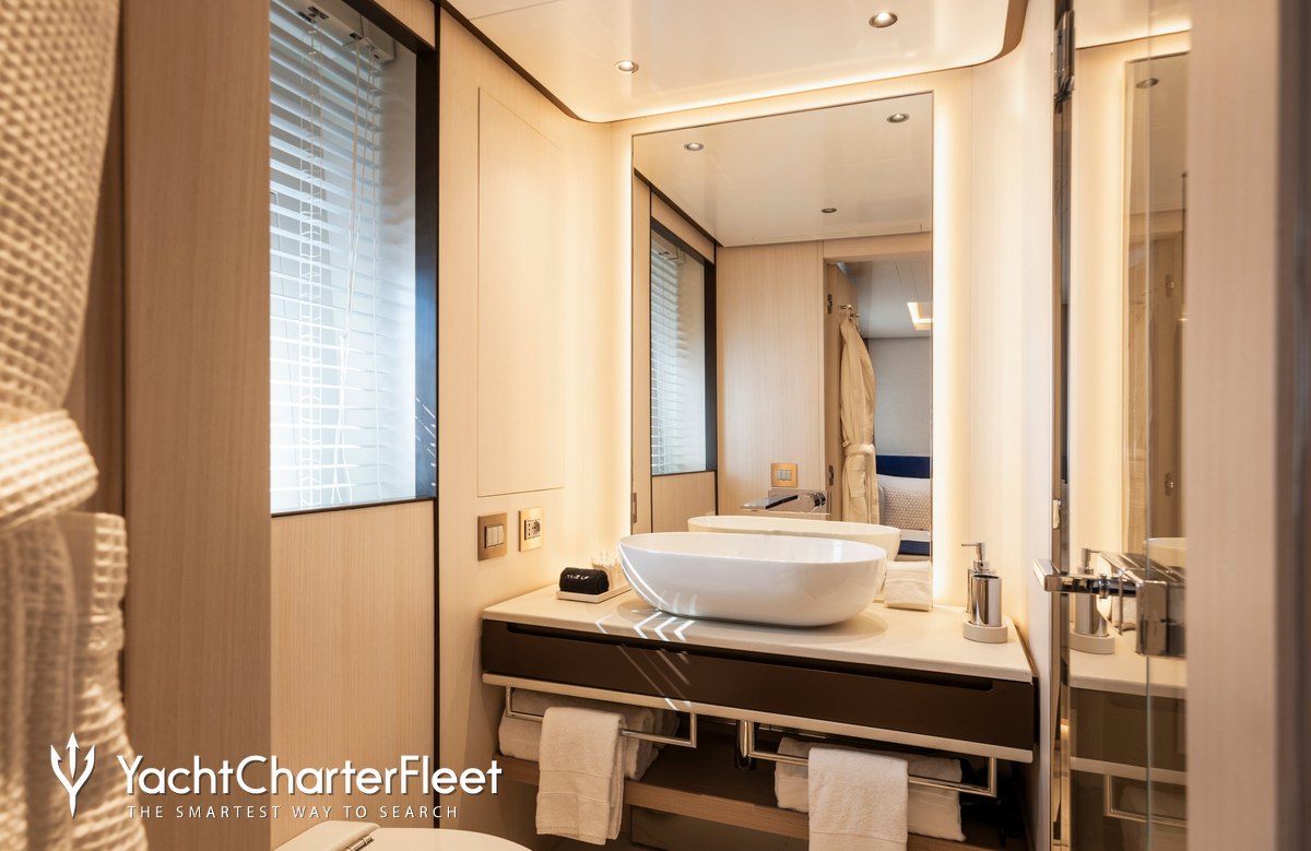 Whatever your activities on your charter, you'll find some impressive features are seamlessly integrated to help you such as satellite communications, keeping you connected on any voyage. Whether you want to work, use social media or stream movies on board this yacht, you can with Wi-Fi connectivity and in addition guests will experience complete comfort while chartering thanks to air conditioning.