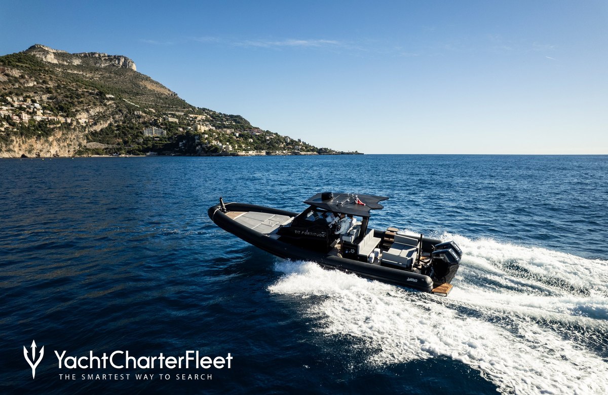 When not cruising Fortitude¹ has onboard an incredible selection of water toys and accessories for you and your guests to connect with the waters around you. Take to the sea on a Jet Ski offering you power and control on the water. Guests can feel the wind in their hair and jump the waves on a Yamaha WaveRunner. Additionally, there are towable toys offering fun and adventure. If that isn't enough Fortitude¹ also features waterskis, wakeboards, kayaks, wakesurf boards, kneeboards. Fortitude¹ has a 11.8m/38'9" Sea Water Tender to transfer you from ship to shore.