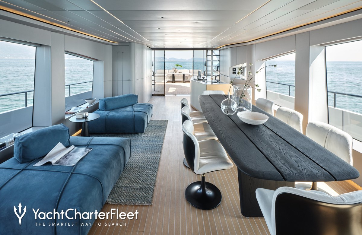 Whatever your activities on your charter, you'll find some impressive features are seamlessly integrated to help you such as Wi-Fi connectivity, allowing you to stay connected at all times, should you wish. You can stay comfortable on board whatever the weather, with air conditioning during your charter.