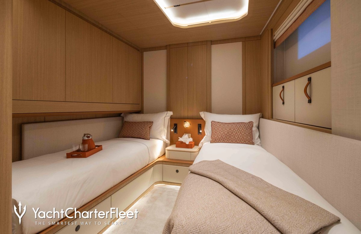 Built in 2025, Haze II offers guest accommodation for up to 12 guests in 5 suites comprising a master suite, two double cabins and two twin cabins. She is also capable of carrying up to 6 crew onboard to ensure a relaxed luxury yacht charter experience.