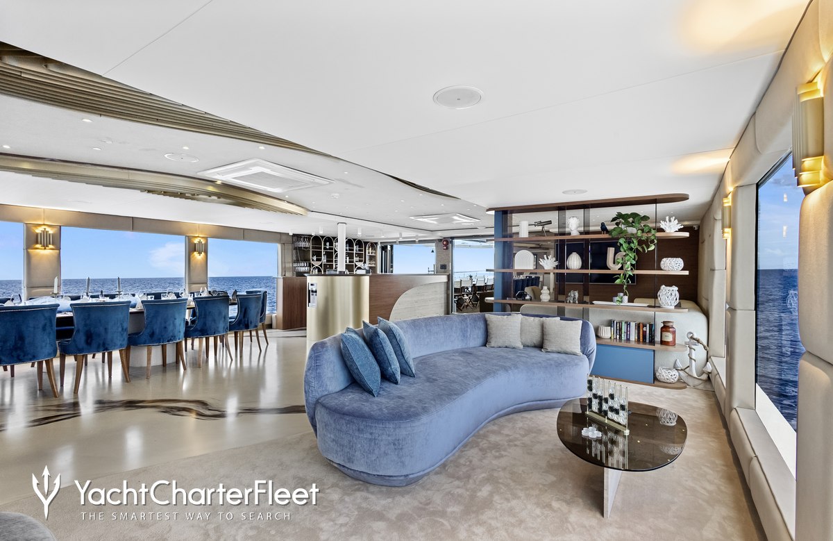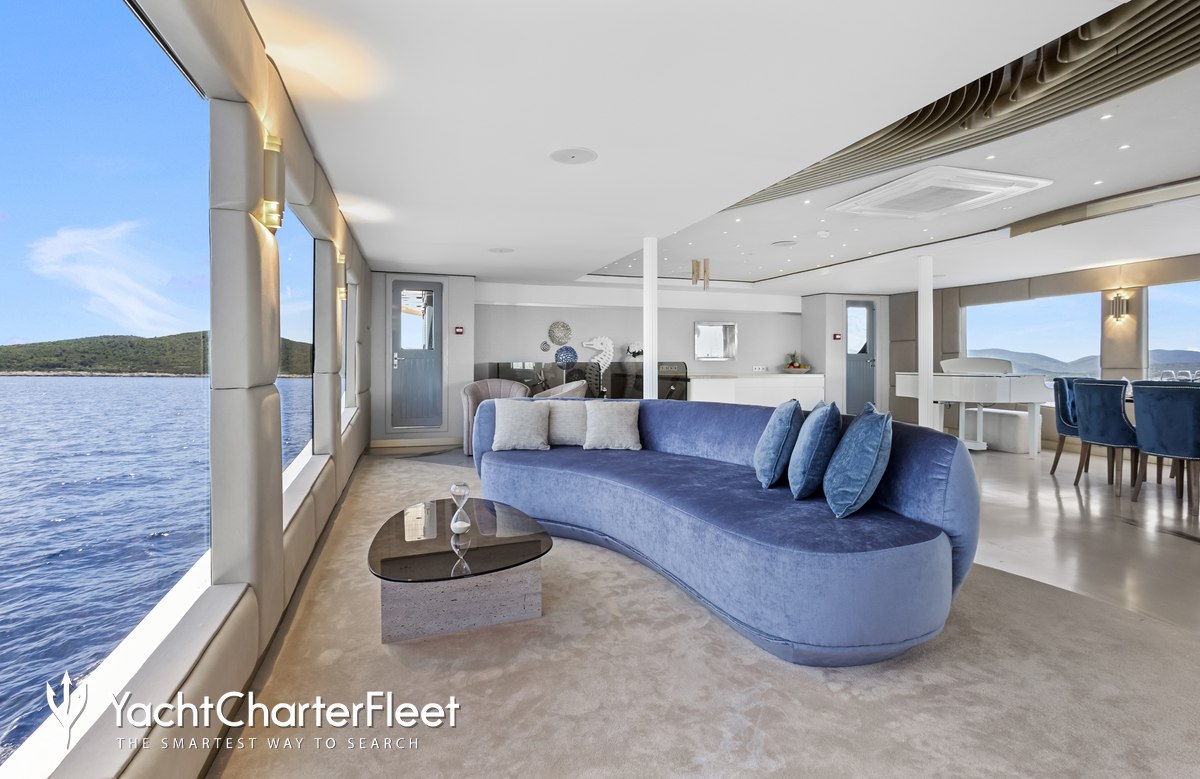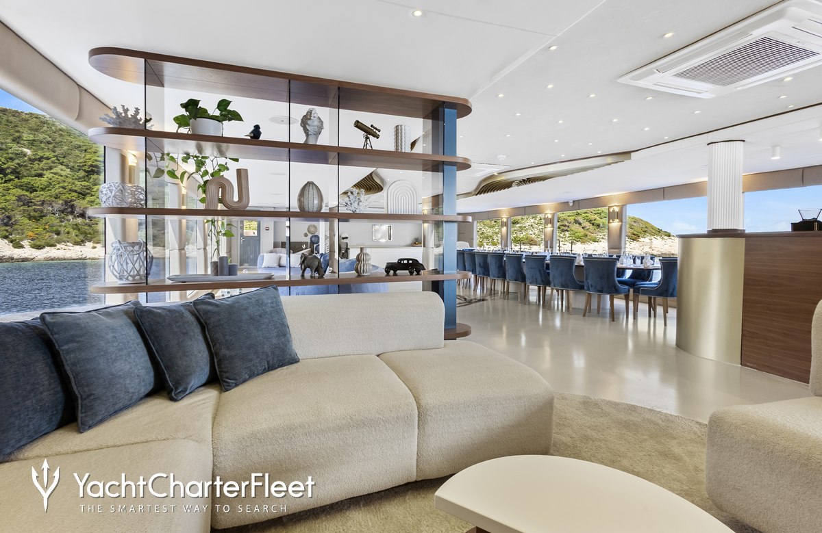 Built in 2019, Bella offers beautifully proportioned decks for exquisite indoor/outdoor living during a luxury yacht charter.
