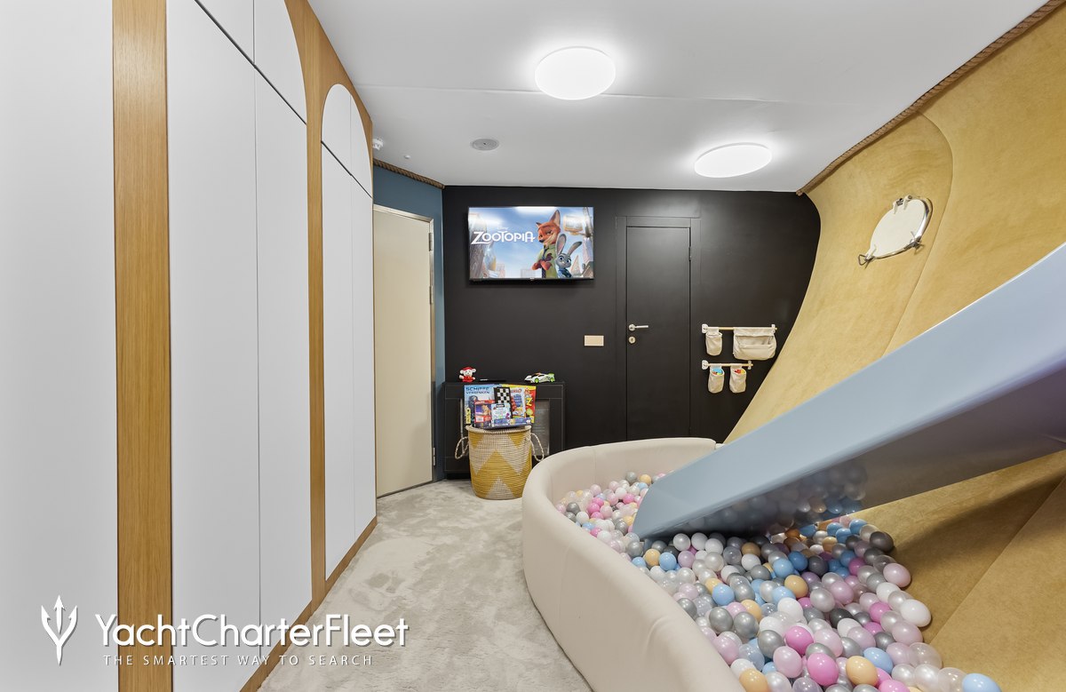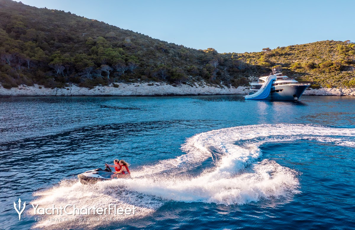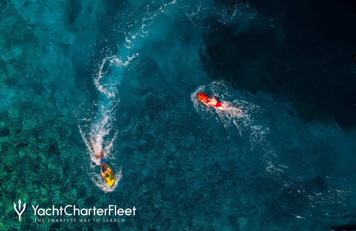 Onboard Bella has a range of toys and accessories to keep you and your guests entertained on the water throughout your stay. Principle among these are Flyboards, experience flying in and out of the water with the latest in high adrenaline watersport. Another excellent feature are waterslides bringing a sense of fun that all the family can enjoy. Take to the sea on the Jet Skis offering you power and control on the water. If that isn't enough Bella also features waterskis, a seabob, wakeboards, kayaks and paddleboards. When it comes to Tenders, Bella has you covered - with two tenders, including a 6.5m/21'4" Tender.