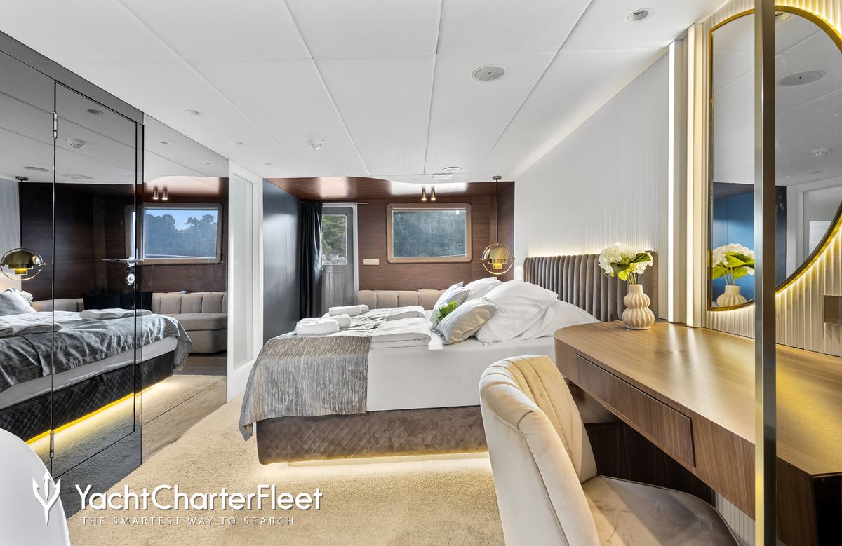 Whatever your activities on your charter, you'll find some impressive features are seamlessly integrated to help you such as Wi-Fi connectivity, allowing you to stay connected at all times, should you wish. Guests will experience complete comfort while chartering thanks to air conditioning.