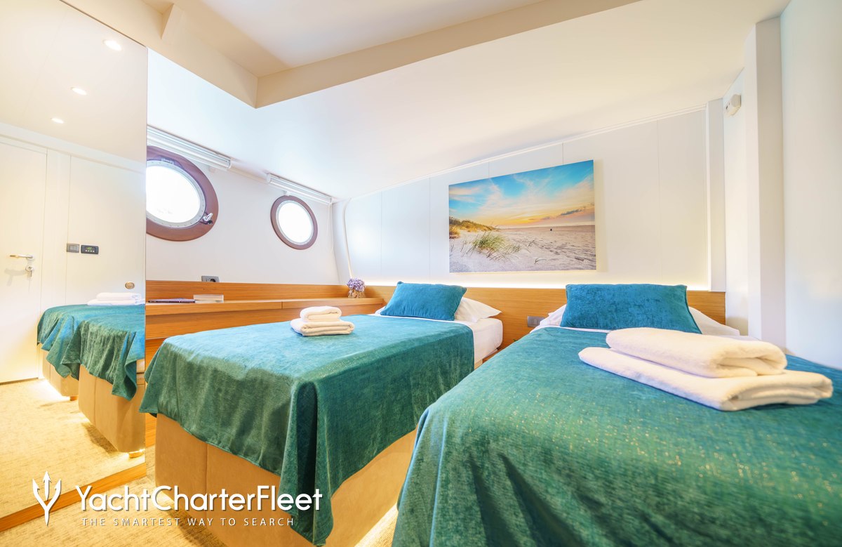 Green Ray is notable for her six cabin layout, offering great flexibility for a charter yacht of this size. Built in 2019, She offers guest accommodation for up to 12 guests. She is also capable of carrying up to 4 crew onboard to ensure a relaxed luxury yacht charter experience.