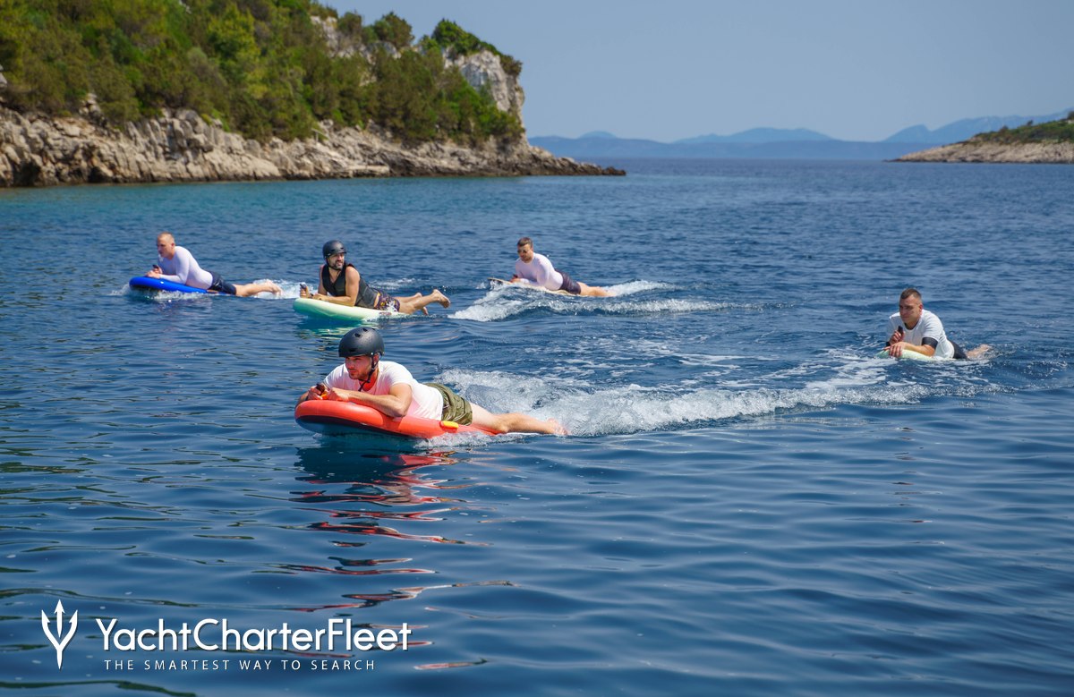Equipped with a selection of water-toys Green Ray lets you and your guests turn the Mediterranean into your own private playground. Take to the sea on the Jet Skis offering you power and control on the water. Also there are waterskis that are hugely entertaining whether you are a beginner or a seasoned pro. In addition there are wakeboards so guests can show off at speed. If that isn't enough Green Ray also features canoes, fishing equipment, paddleboards and snorkelling equipment. Green Ray has a Tender to transfer you from ship to shore.
