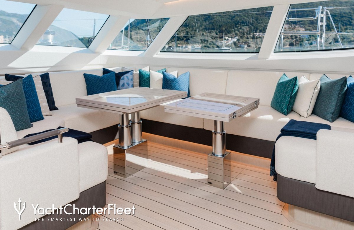 Sunyo benefits from some excellent features to improve your charter, notably Wi-Fi connectivity, allowing you to stay connected at all times, should you wish. You can stay comfortable on board whatever the weather, with air conditioning during your charter.