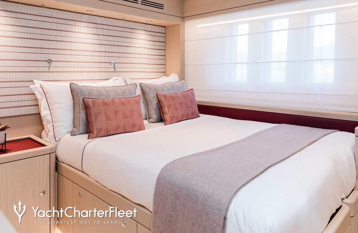 Built in 2025, Sunyo offers guest accommodation for up to 8 guests in 4 suites comprising a master suite, one double cabin and two cabins that can operate as twins or doubles. She is also capable of carrying up to 4 crew onboard to ensure a relaxed luxury yacht charter experience.