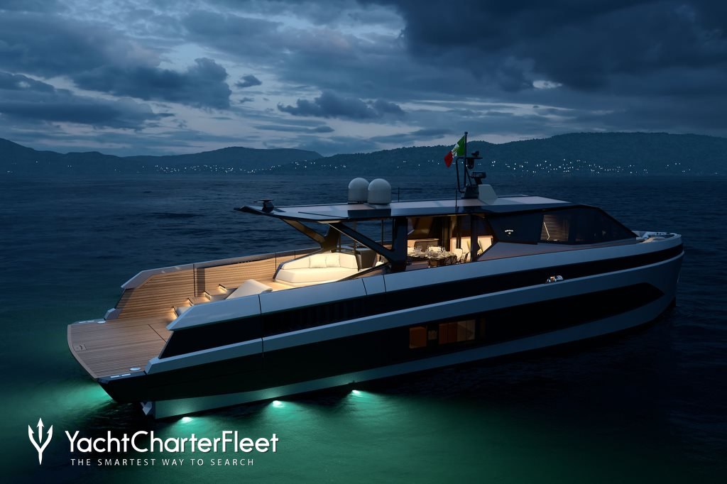 The 21.49m/70'6" motor yacht 'Moonraker 3' is an excellent new superyacht for the luxury charter market. Delivered by the Italian shipyard Wally she can comfortably accommodate up to 6 guests in 3 cabins.