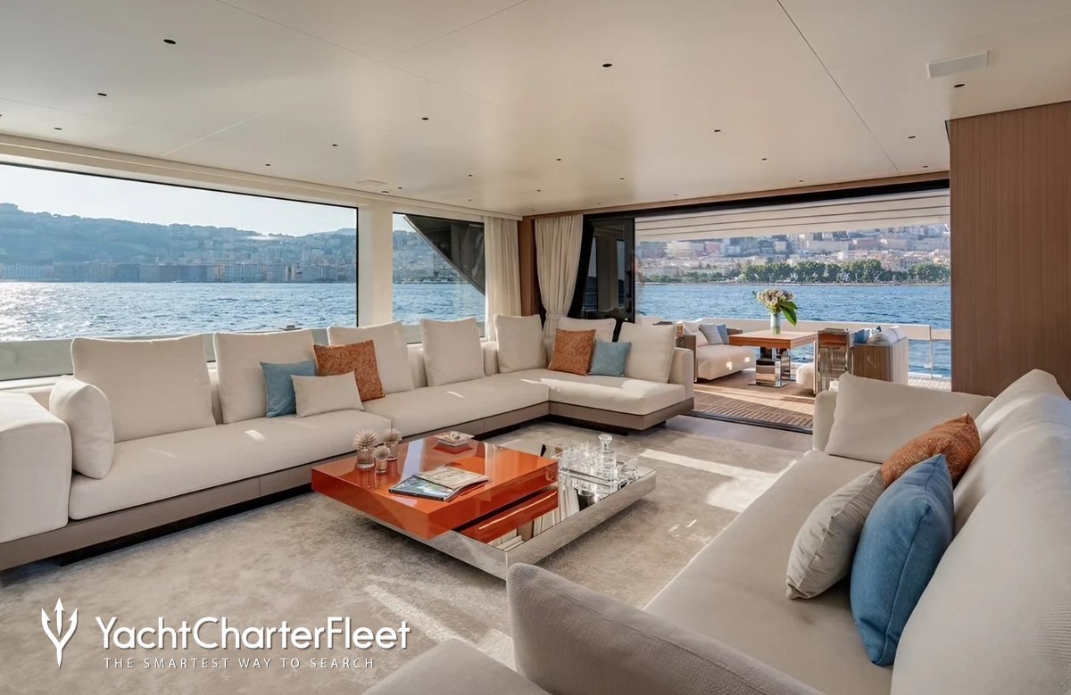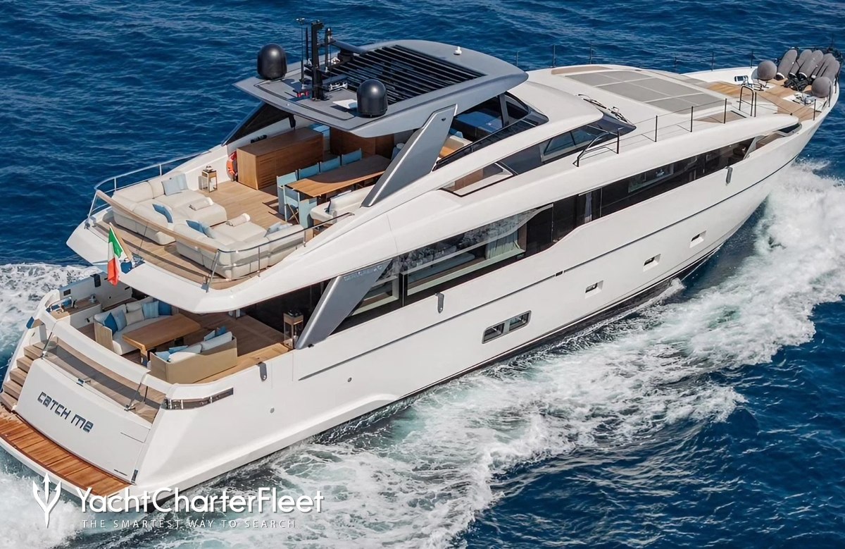 The 26.6m/87'3" motor yacht 'Catch Me' offers the unmissable chance to charter a brand new superyacht, having only launched this year. Delivered by the Italian shipyard Sanlorenzo and featuring interior styling by Italian designer Officina Italiana Design she can comfortably accommodate up to 8 guests in 4 cabins.