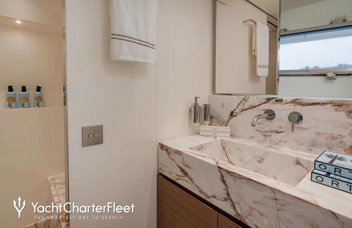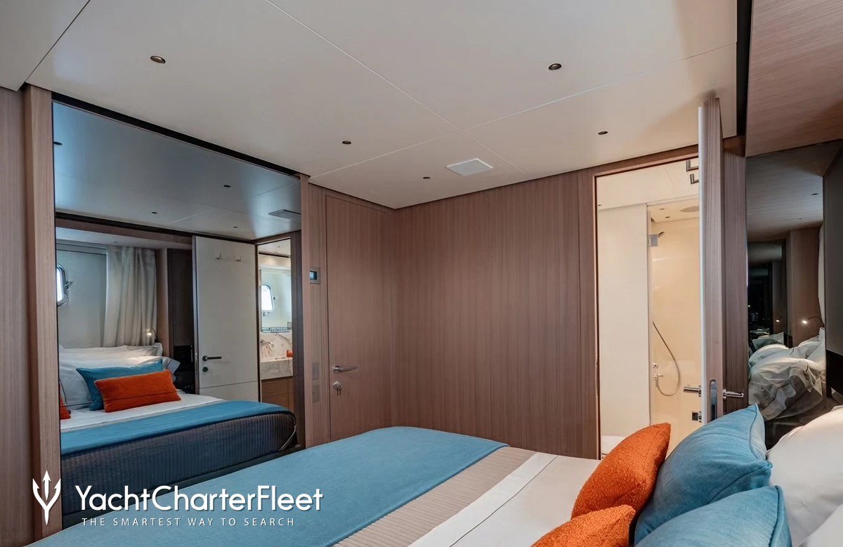 Built in 2025, Catch Me offers guest accommodation for up to 8 guests in 4 suites comprising a master suite, one VIP cabin and two twin cabins. She is also capable of carrying up to 4 crew onboard to ensure a relaxed luxury yacht charter experience.