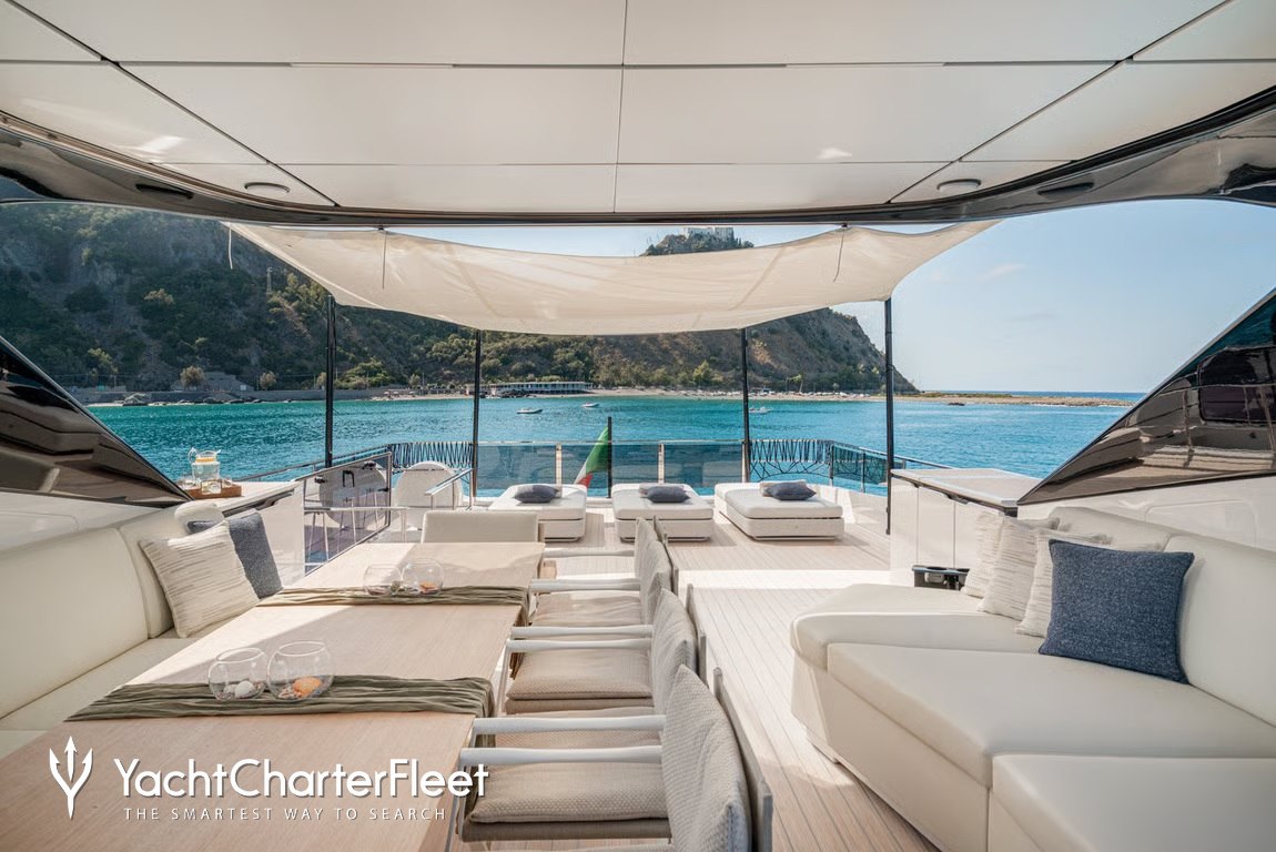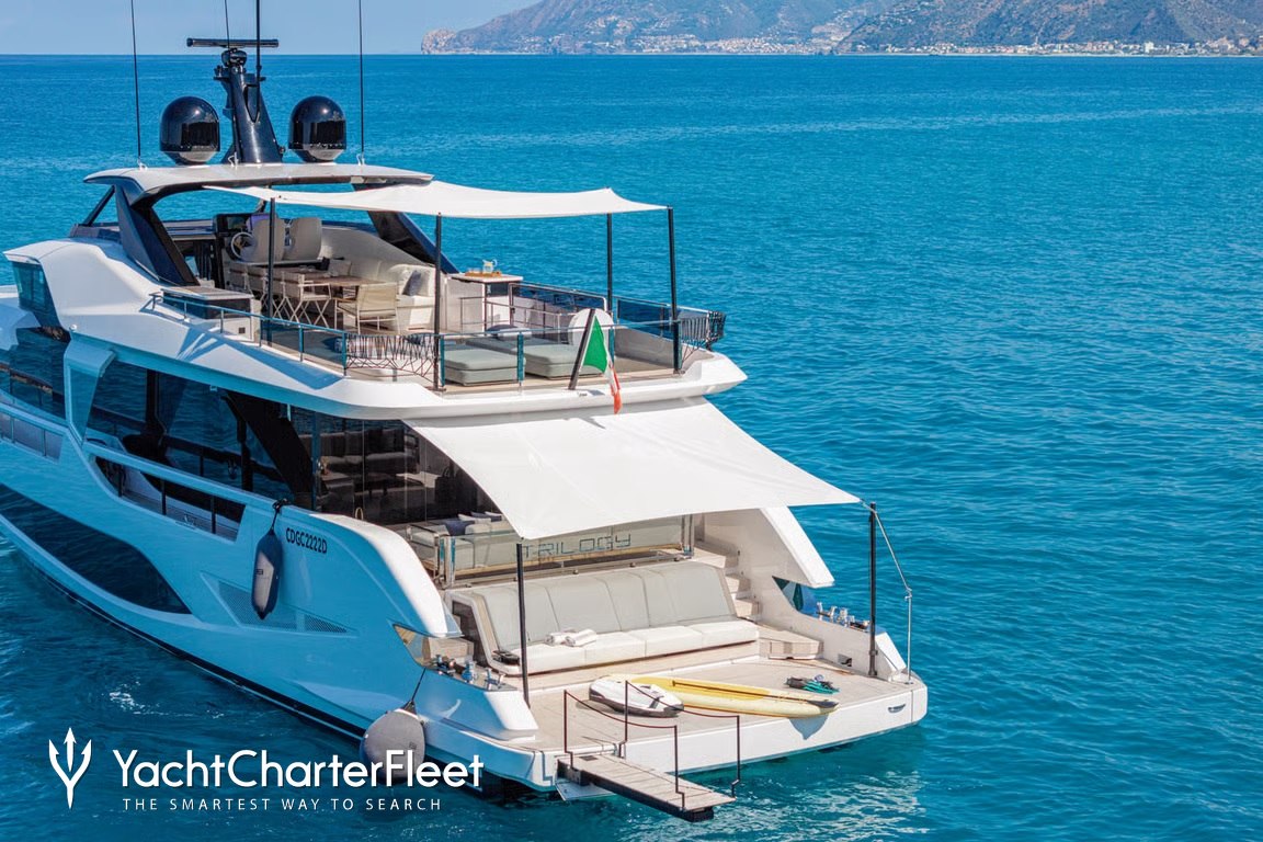 The 23.7m/77'9" motor yacht 'Trilogy' offers the unmissable chance to charter a brand new superyacht, having only launched this year. Delivered by the Italian shipyard Ferretti Yachts and featuring interior styling by Italian designer Ideaeitalia she can comfortably accommodate up to 8 guests in 4 cabins.