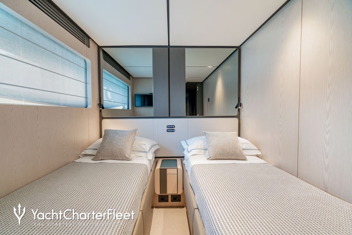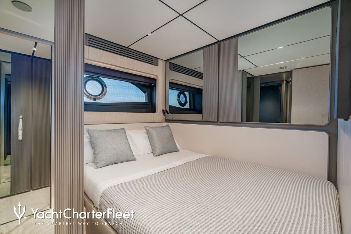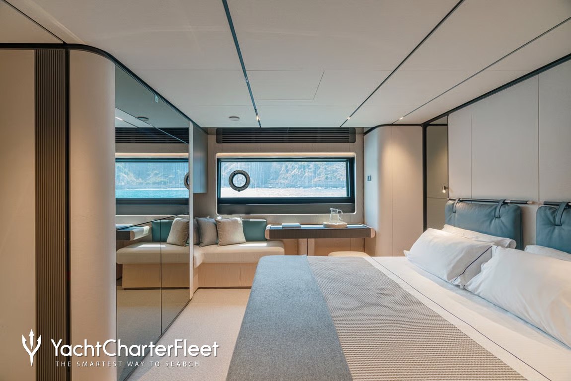 Built in 2025, Trilogy offers guest accommodation for up to 8 guests in 4 suites comprising a master suite, one VIP cabin, one twin cabin and one cabin that can operate as twin or double. She is also capable of carrying up to 3 crew onboard to ensure a relaxed luxury yacht charter experience.