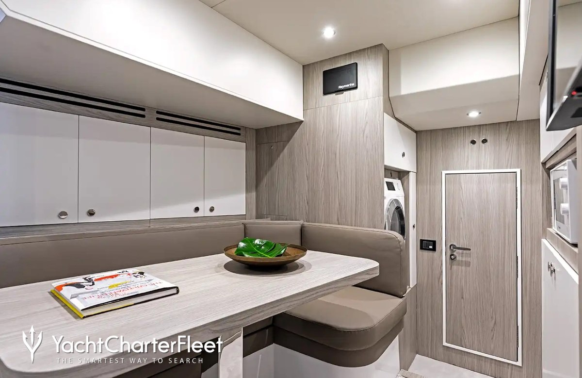 Getaway benefits from some excellent features to improve your charter, notably Wi-Fi connectivity, allowing you to stay connected at all times, should you wish. Guests will experience complete comfort while chartering thanks to air conditioning.