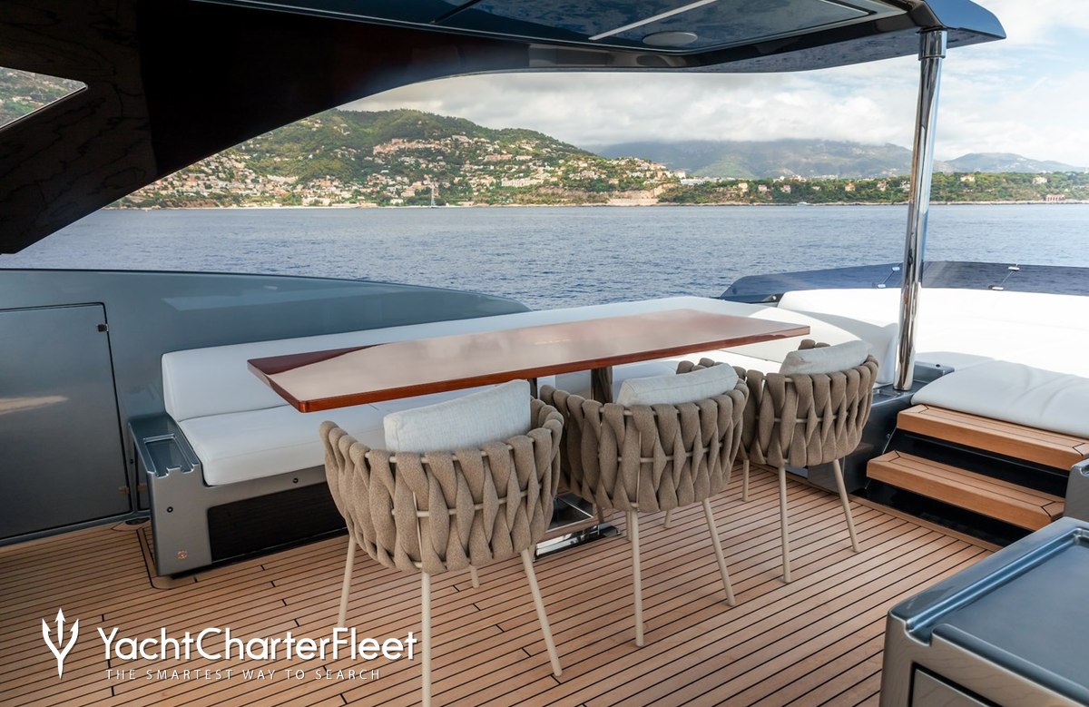 The 25.29m/83' motor yacht 'L’as Bleu' offers the unmissable chance to charter a brand new superyacht, having only launched this year. Delivered by the Italian shipyard Riva and featuring interior styling by Italian designer Officina Italiana Design she can comfortably accommodate up to 8 guests in 4 cabins.