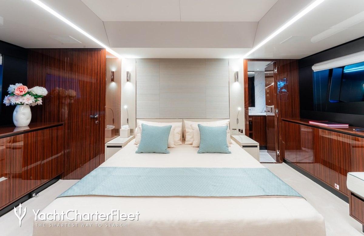 L’as Bleu offers guest accommodation for up to 8 guests in 4 suites comprising a master suite, one VIP cabin and two twin cabins. She is also capable of carrying up to 3 crew onboard to ensure a relaxed luxury yacht charter experience.