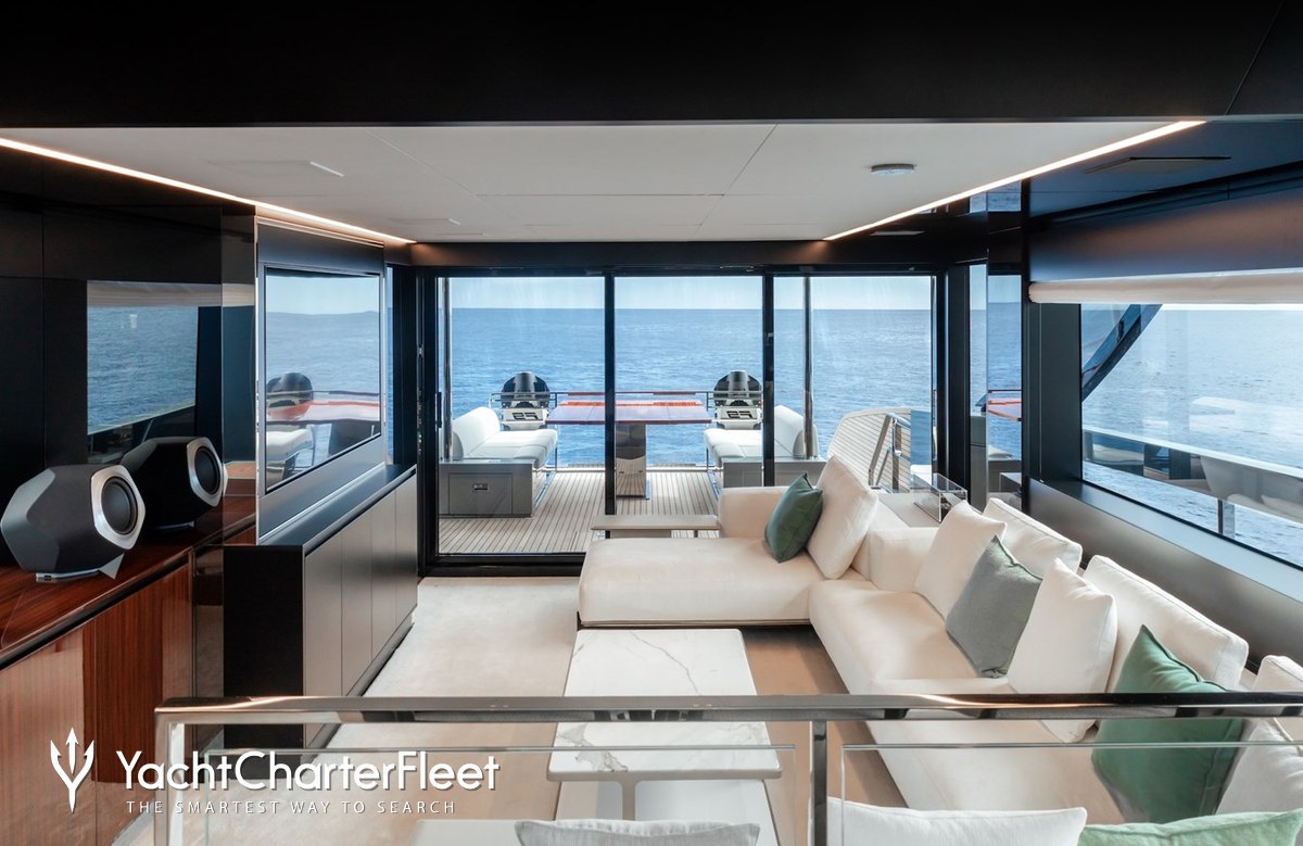 Whatever your activities on your charter, you'll find some impressive features are seamlessly integrated to help you including Wi-Fi connectivity, allowing you to stay connected at all times, should you wish. You can stay comfortable on board whatever the weather, with air conditioning during your charter.