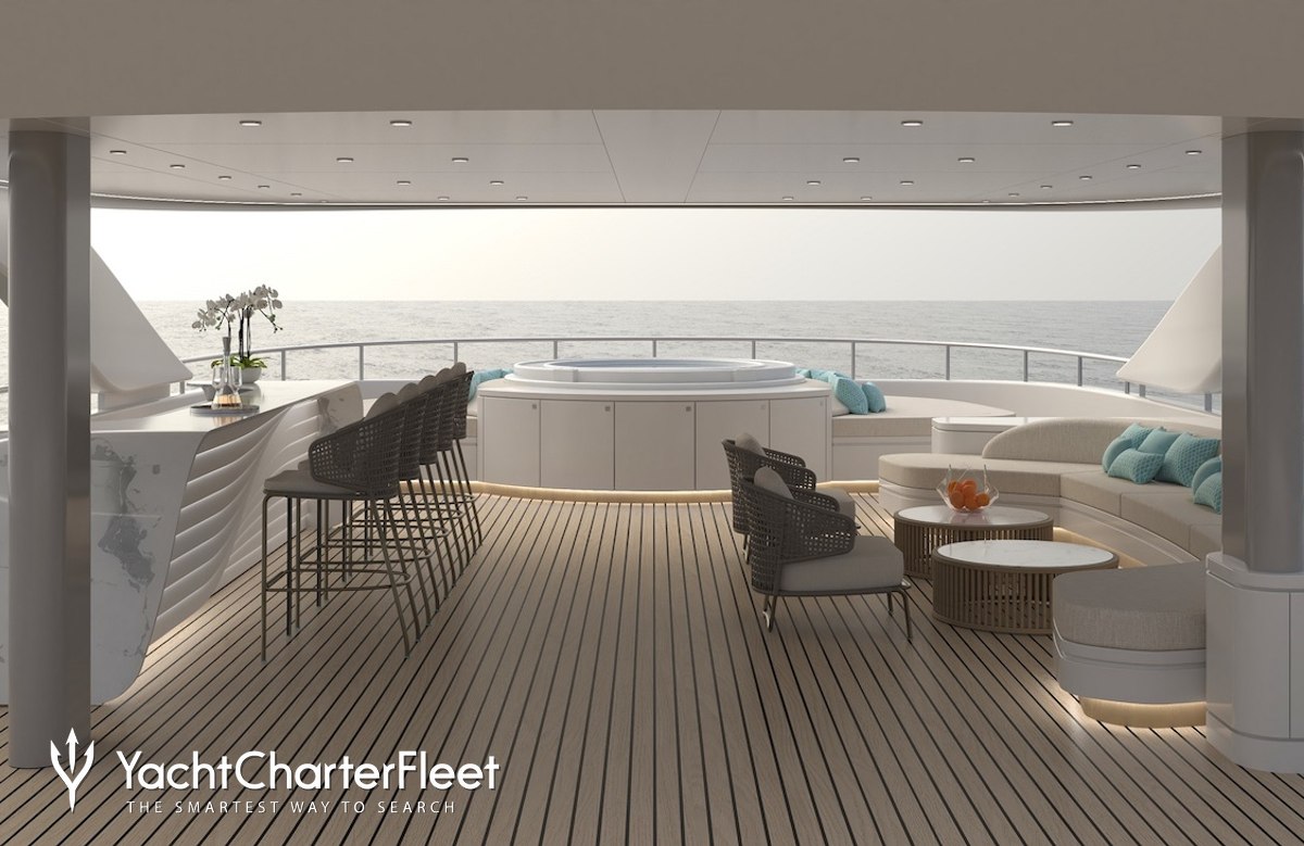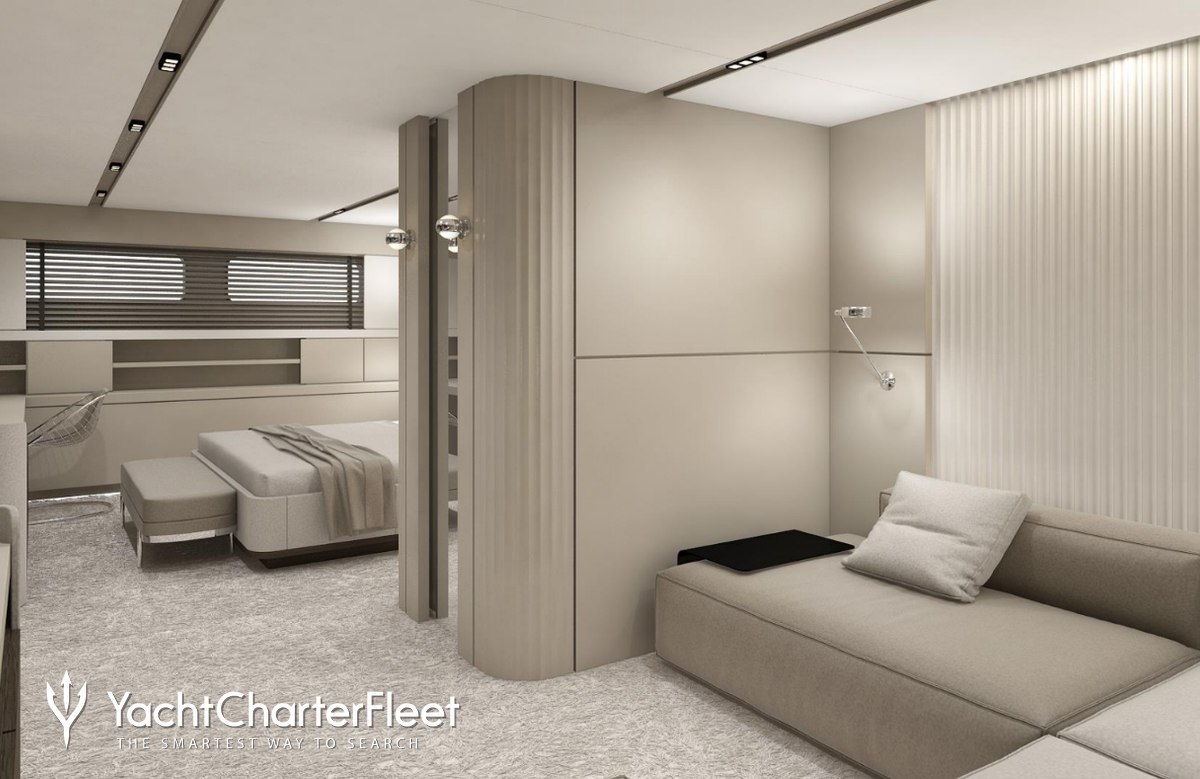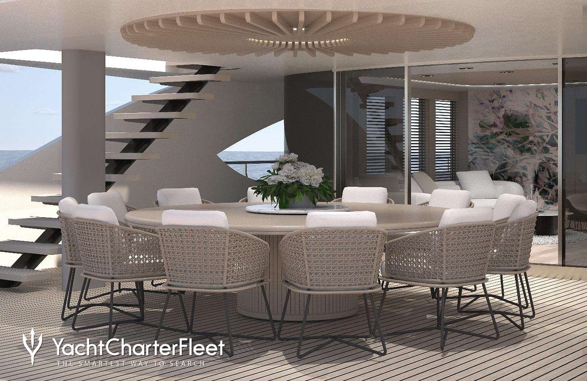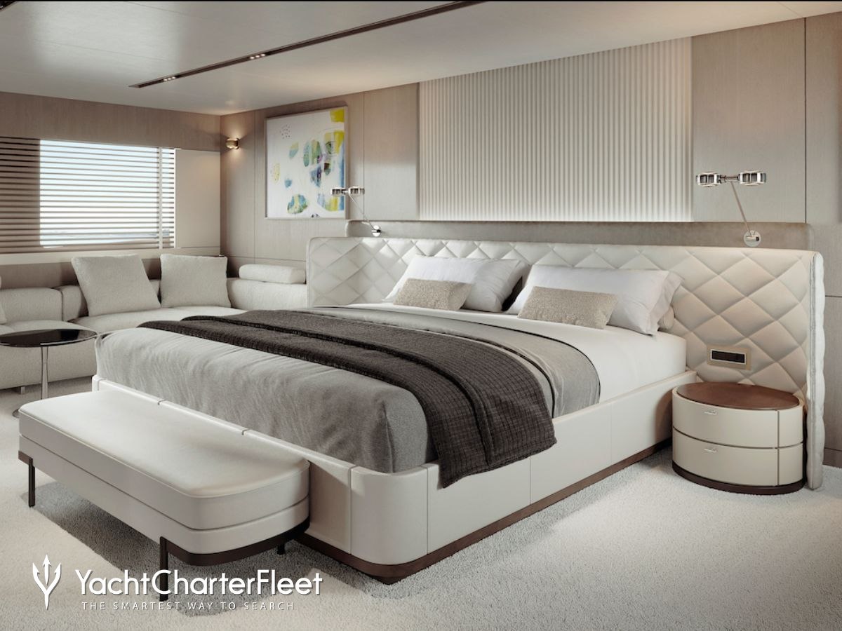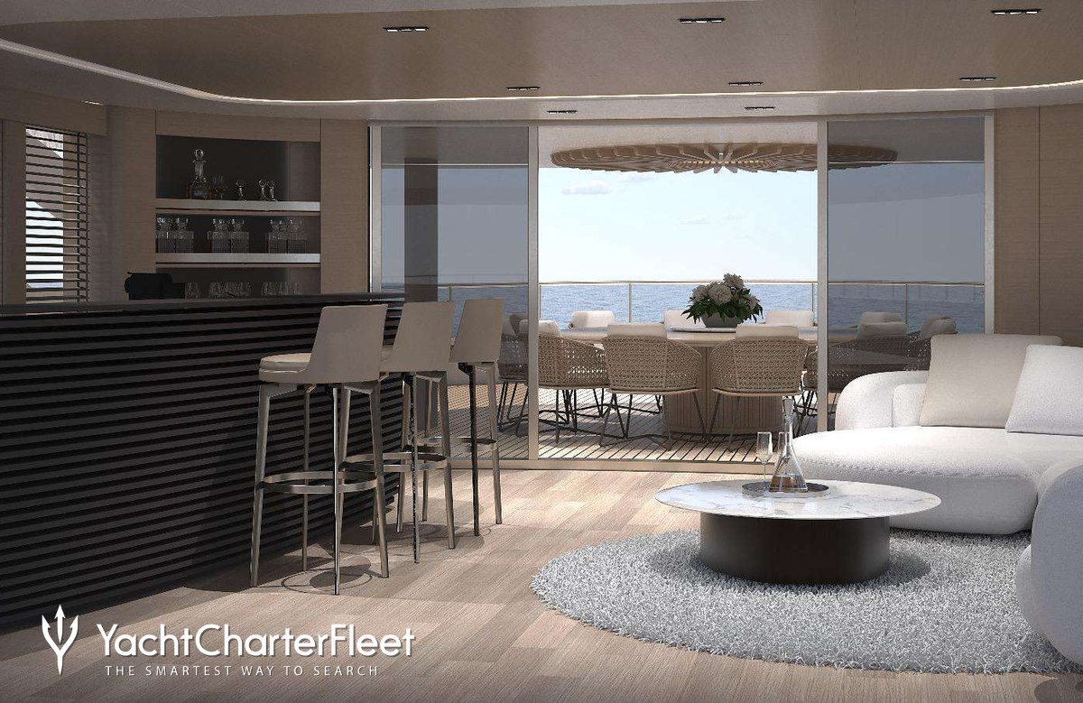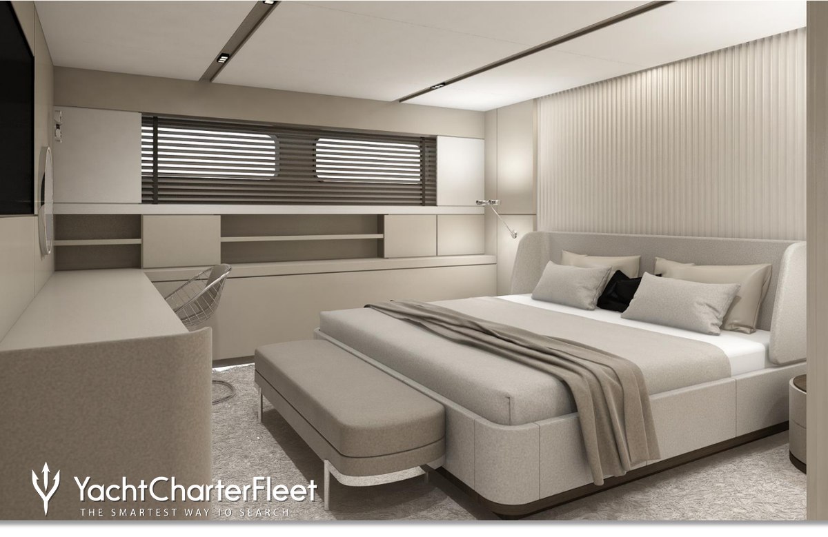 Due for delivery in 2026, Oriy offers guest accommodation for up to 12 guests in 6 suites comprising a master suite located on the main deck, one VIP cabin and two double cabins. The bed configuration includes 2 king, 4 queen, 4 singles and 2 convertible. She is also capable of carrying up to 12 crew onboard to ensure a relaxed luxury yacht charter experience.