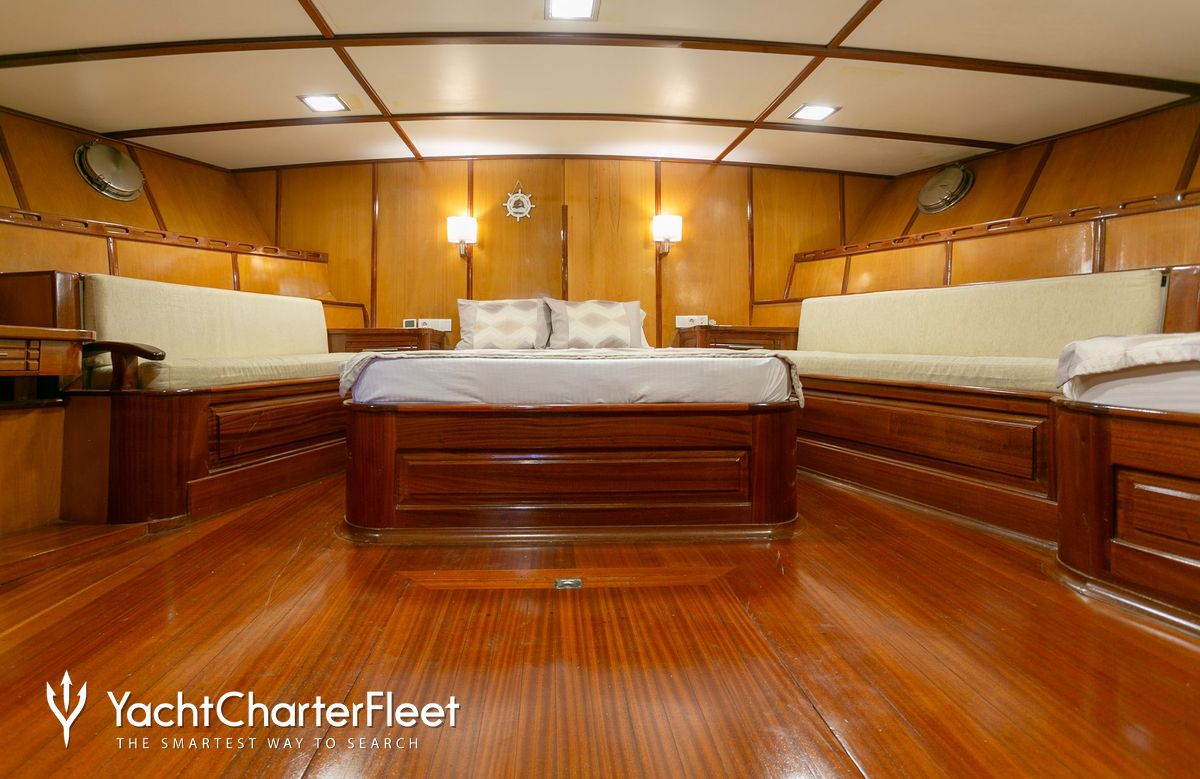 Built with a wood hull and wood superstructure, she offers greater on-board space and is more stable when at anchor thanks to her full-displacement hull. Sarayli 1 comfortably cruises at 10 knots, reaches a maximum speed of 12 knots.