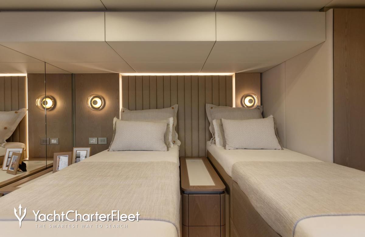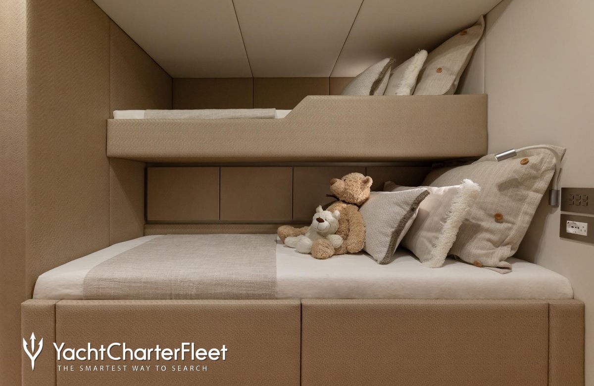 Built in 2025, Zarina II offers guest accommodation for up to 8 guests in 4 suites comprising a master suite, one VIP cabin, one double cabin and one twin cabin. She is also capable of carrying up to 5 crew onboard to ensure a relaxed luxury yacht charter experience.