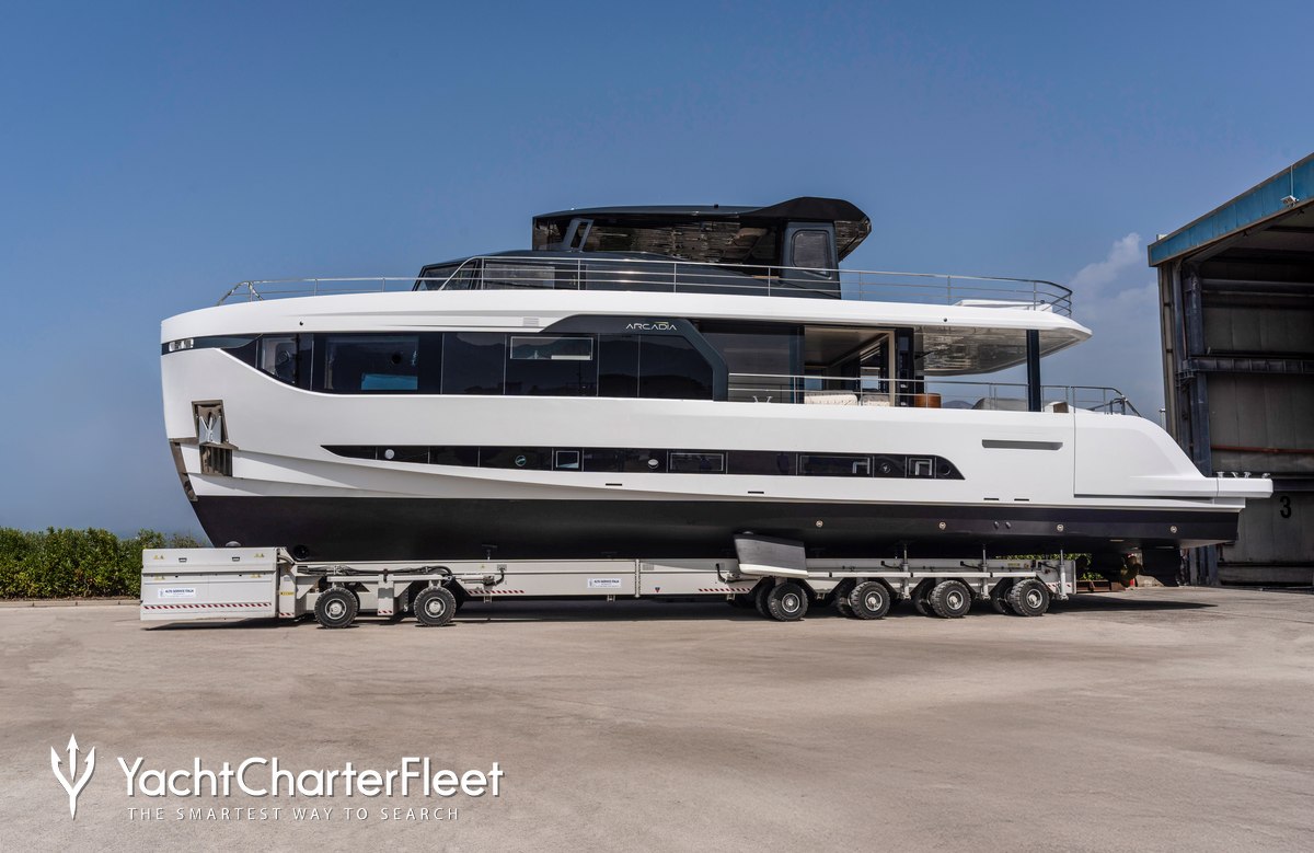 The luxury motor yacht Arcadia A80new /01 is displayed on this page merely for informational purposes and she is not necessarily available for yacht charter or for sale, nor is she represented or marketed in anyway by Trident Media Ltd. This document is not contractual. The yacht particulars displayed in the results above are displayed in good faith and whilst believed to be correct are not guaranteed, please check with your yacht charter broker. Trident Media Ltd does not warrant or assume any legal liability or responsibility for the accuracy, completeness, or usefulness of any information and/or images displayed as they may not be current. All boat information is subject to change without prior notice and is without warranty.
