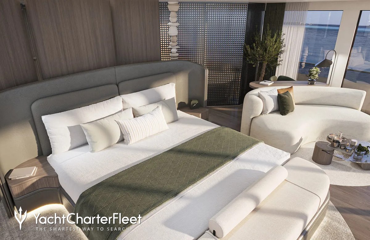 Due for delivery in 2026, Bello offers guest accommodation for up to 12 guests in 6 suites comprising a master suite, one VIP cabin and four double cabins. She is also capable of carrying up to 12 crew onboard to ensure a relaxed luxury yacht charter experience.