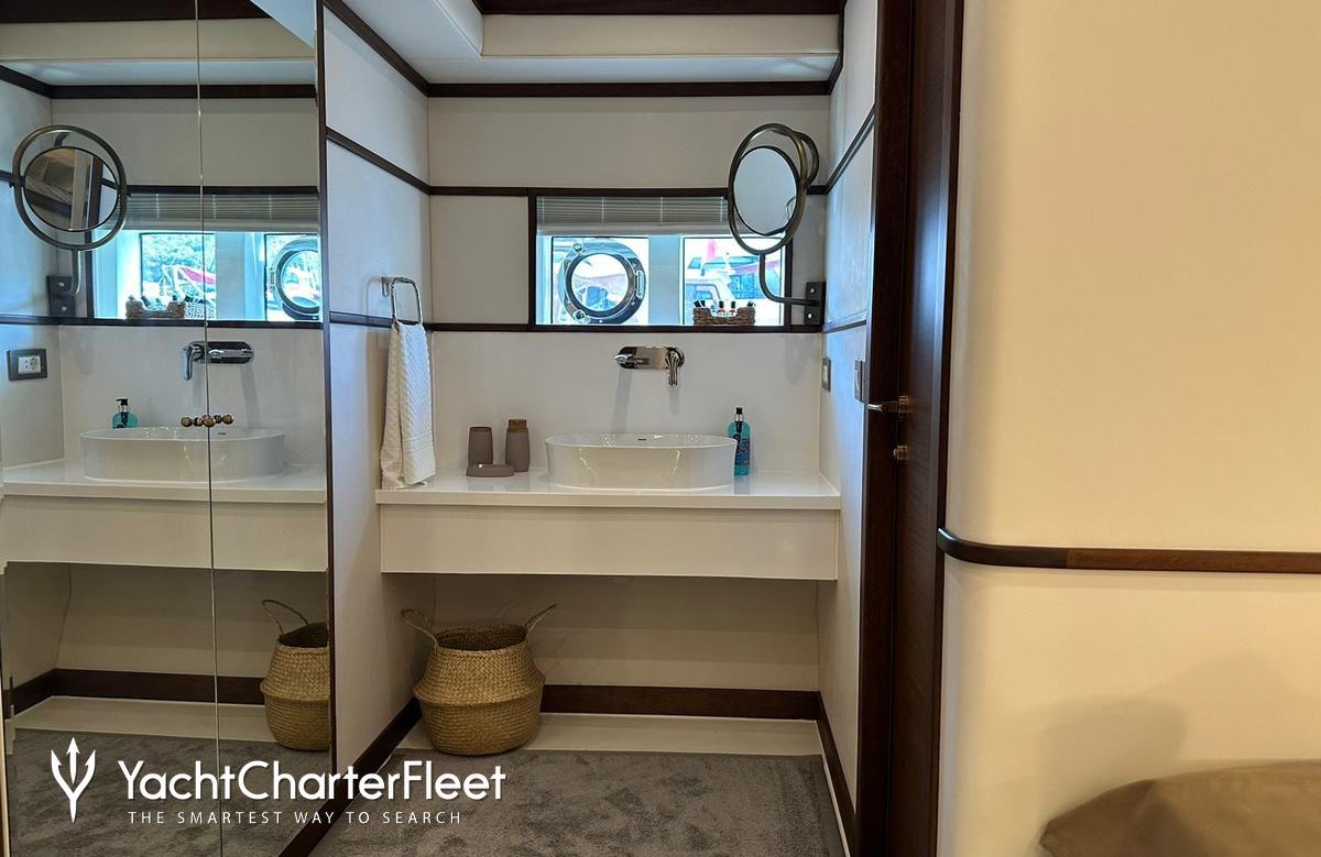 Built in 2023, By C.F. offers guest accommodation for up to 9 guests in 4 suites comprising a master suite, two VIP cabins and one twin cabin. She is also capable of carrying up to 4 crew onboard to ensure a relaxed luxury yacht charter experience.