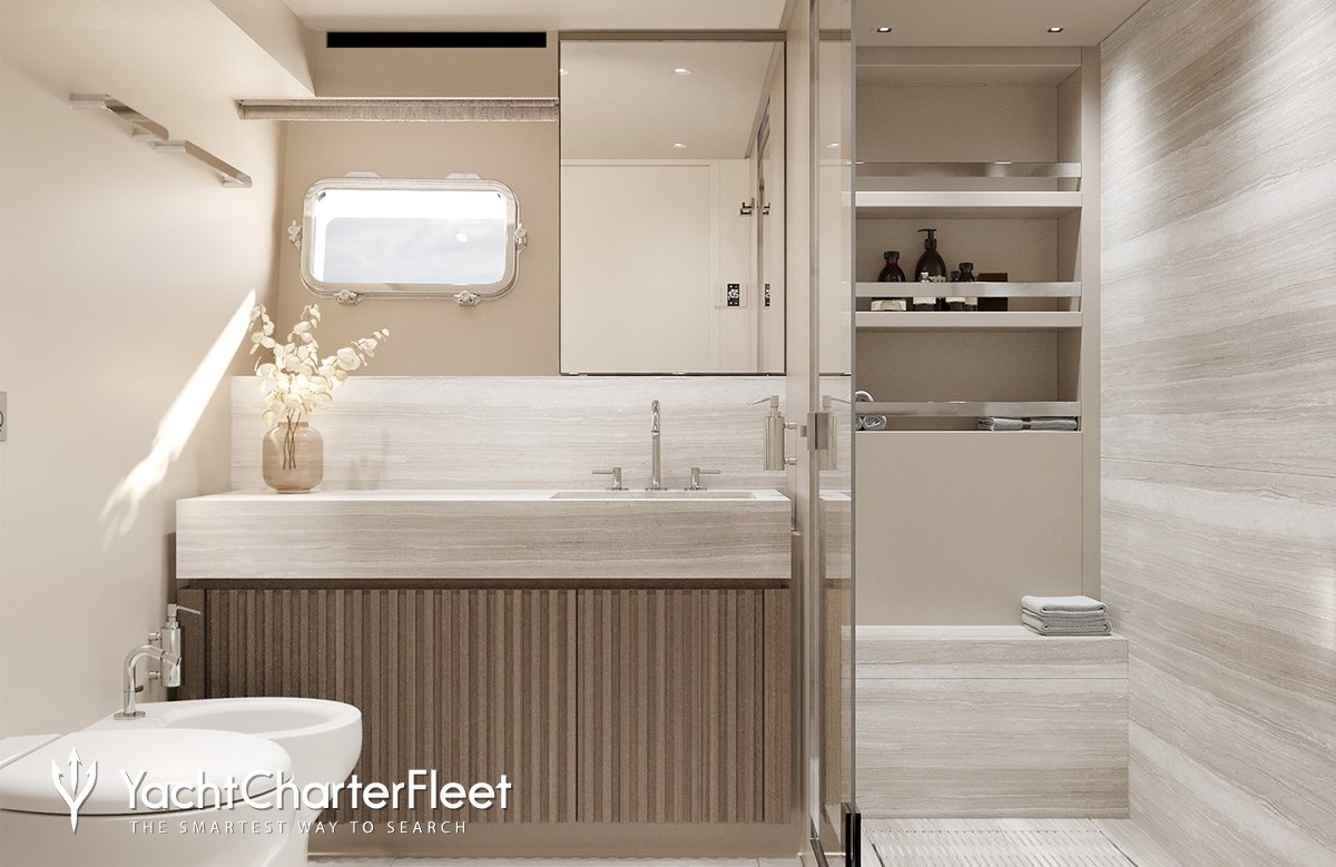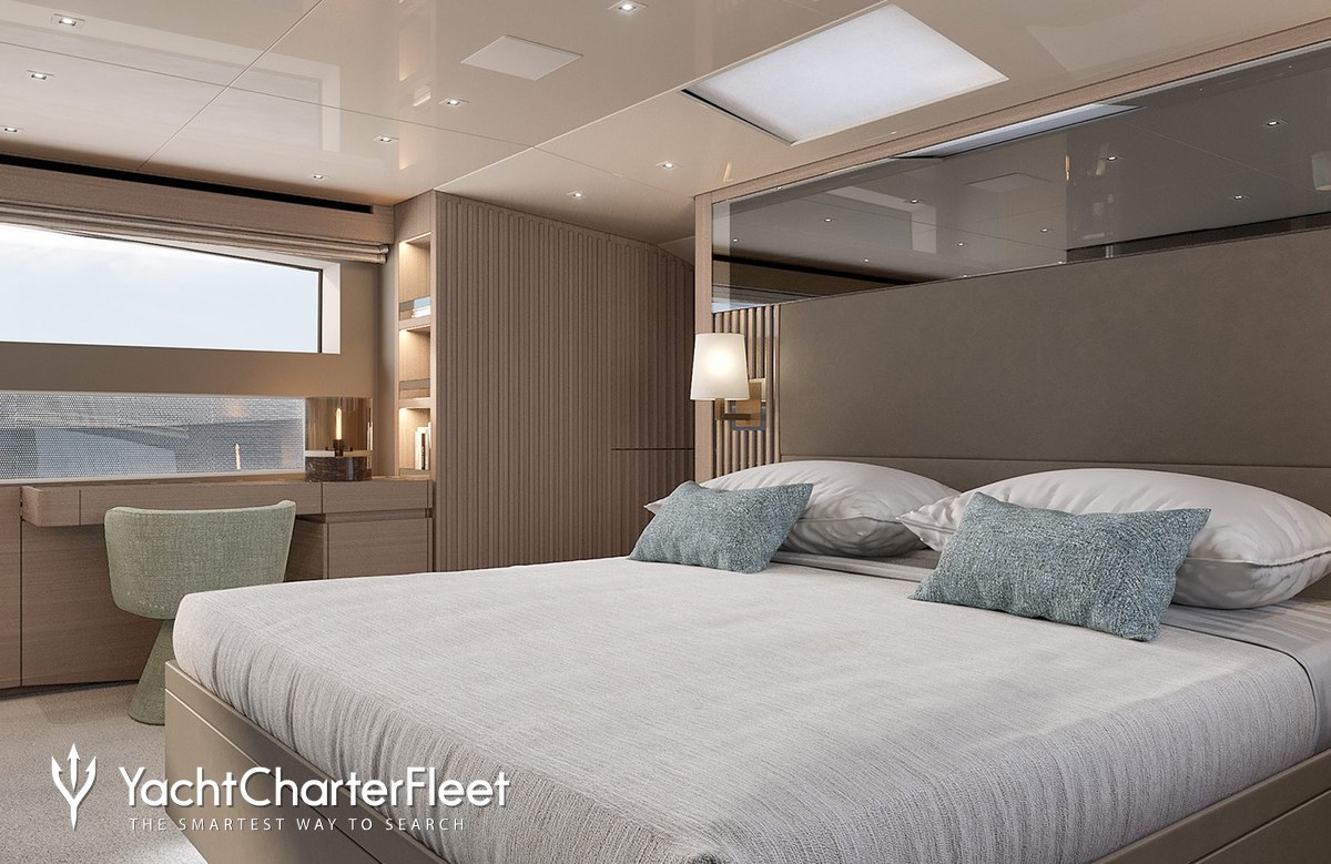 Due for delivery in 2026, Suitu offers guest accommodation for up to 9 guests in 4 suites comprising a master suite, one VIP cabin, one double cabin and one twin cabin. She is also capable of carrying up to 4 crew onboard to ensure a relaxed luxury yacht charter experience.