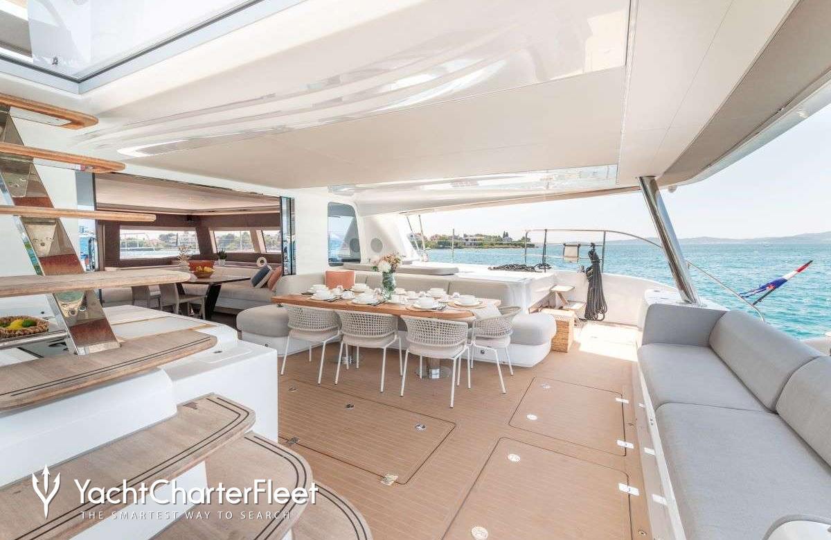 The 20.5m/67'3" catamaran yacht 'Seaductive Orca' is an excellent new superyacht for the luxury charter market. Delivered by the French shipyard Lagoon and featuring interior styling by French designer Lagoon she can comfortably accommodate up to 8 guests in 4 cabins.