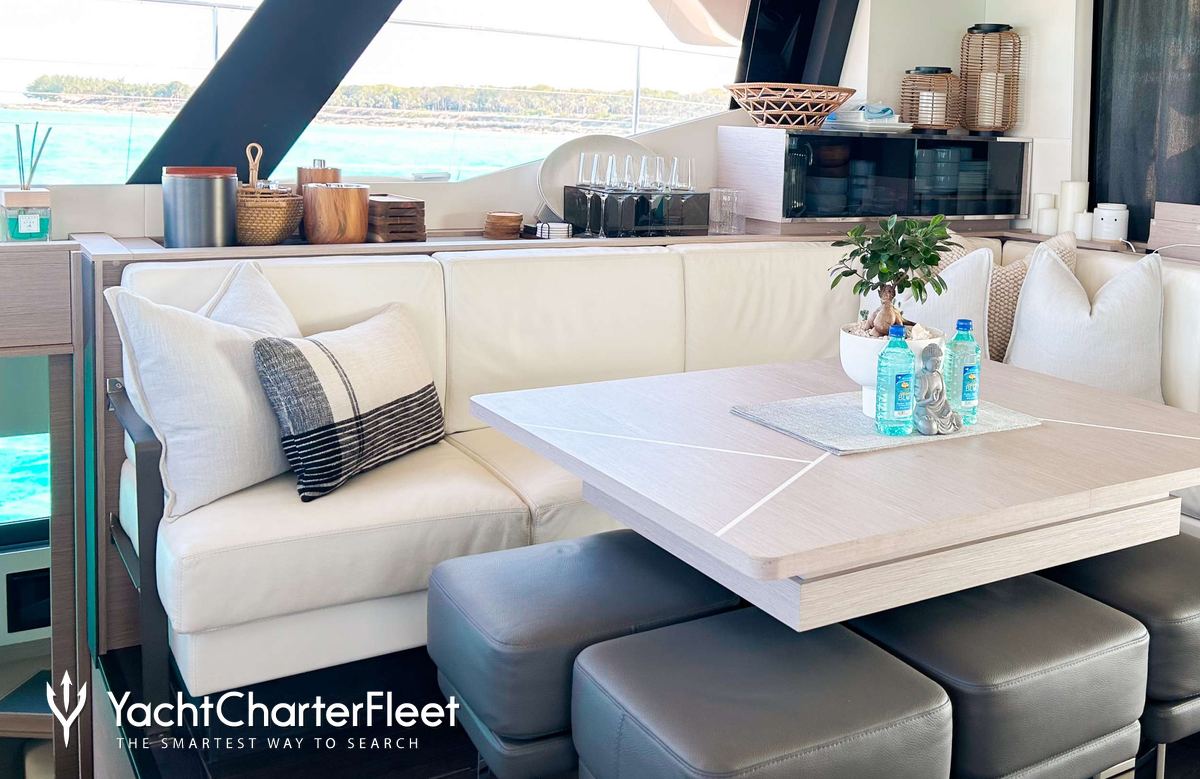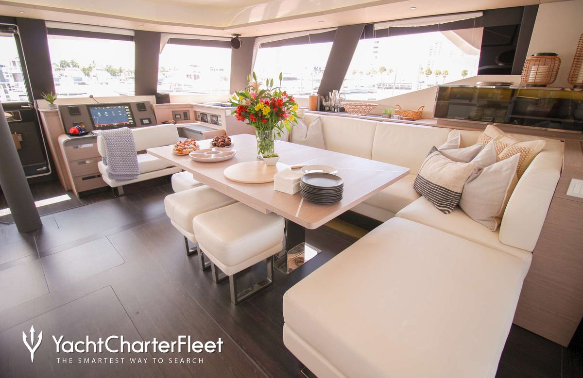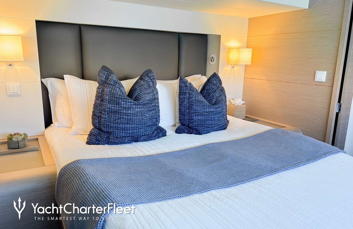 Whatever your activities on your charter, you'll find some impressive features are seamlessly integrated to help you, particularly Wi-Fi connectivity, allowing you to stay connected at all times, should you wish. You can stay comfortable on board whatever the weather, with air conditioning during your charter.