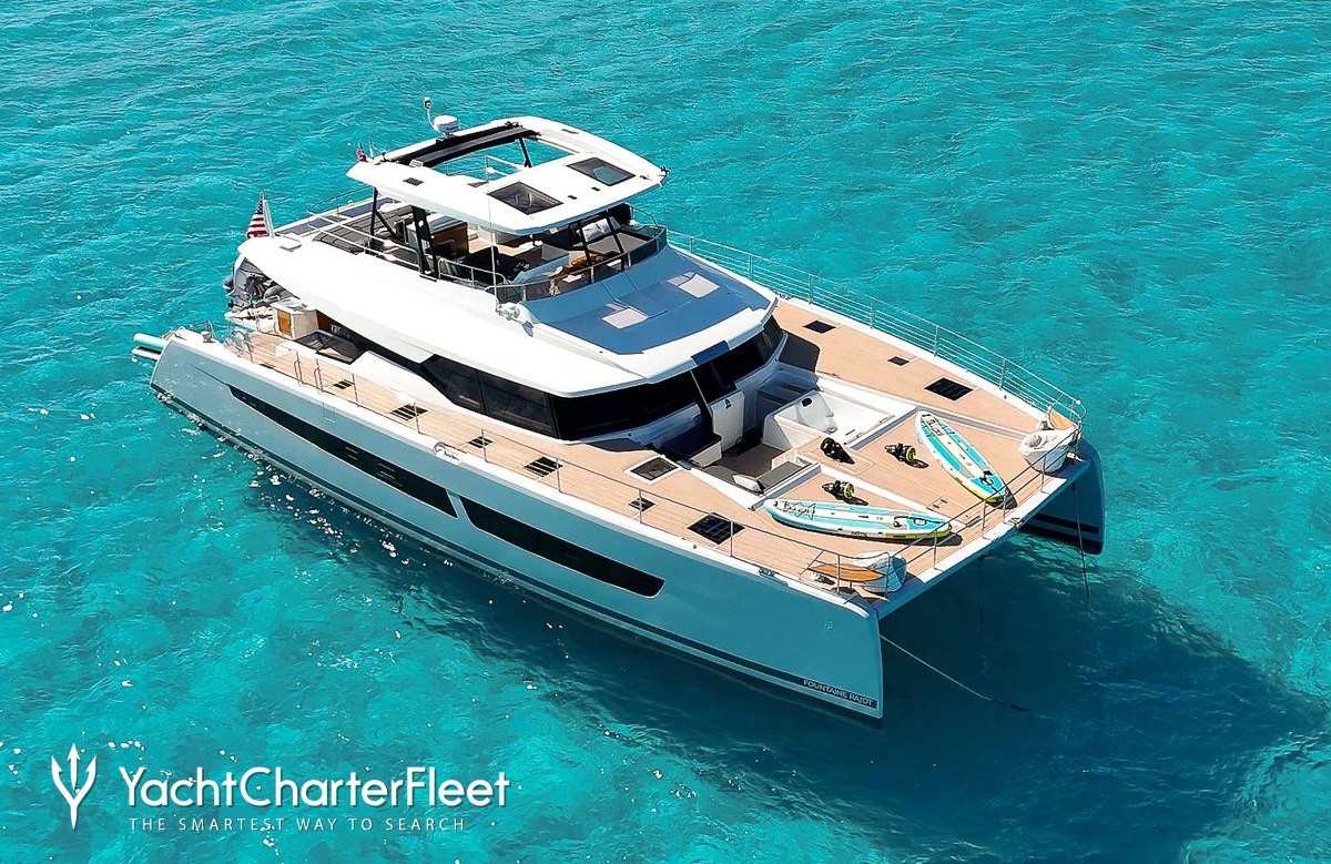 The 20.42m/67' 'Princess Mila' catamaran yacht built by the French shipyard Fountaine Pajot is available for charter for up to 8 guests in 4 cabins.