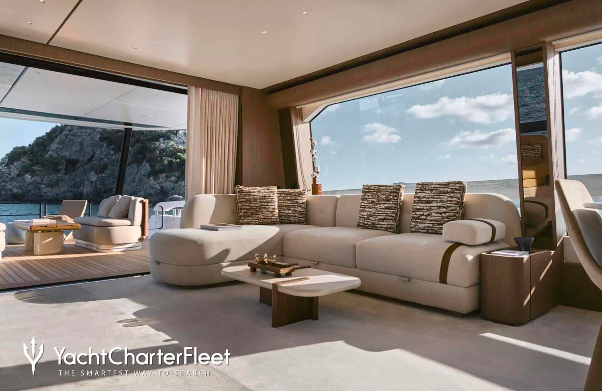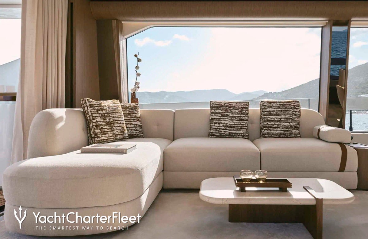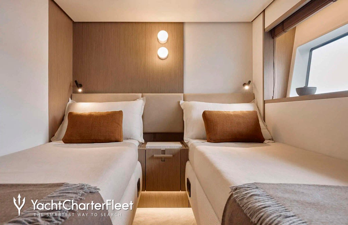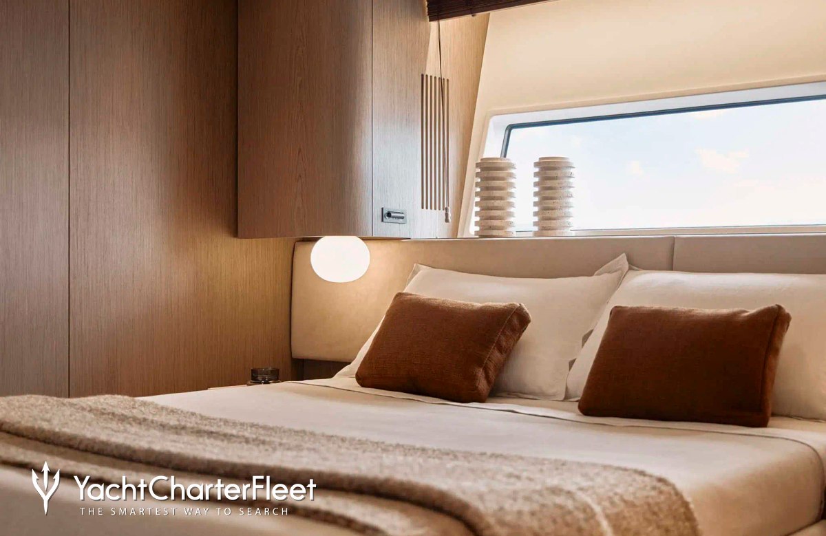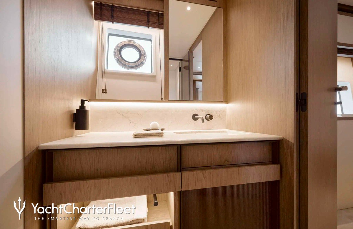 Whatever your activities on your charter, you'll find some impressive features are seamlessly integrated to help you such as Wi-Fi connectivity, allowing you to stay connected at all times, should you wish. You can stay comfortable on board whatever the weather, with air conditioning during your charter.