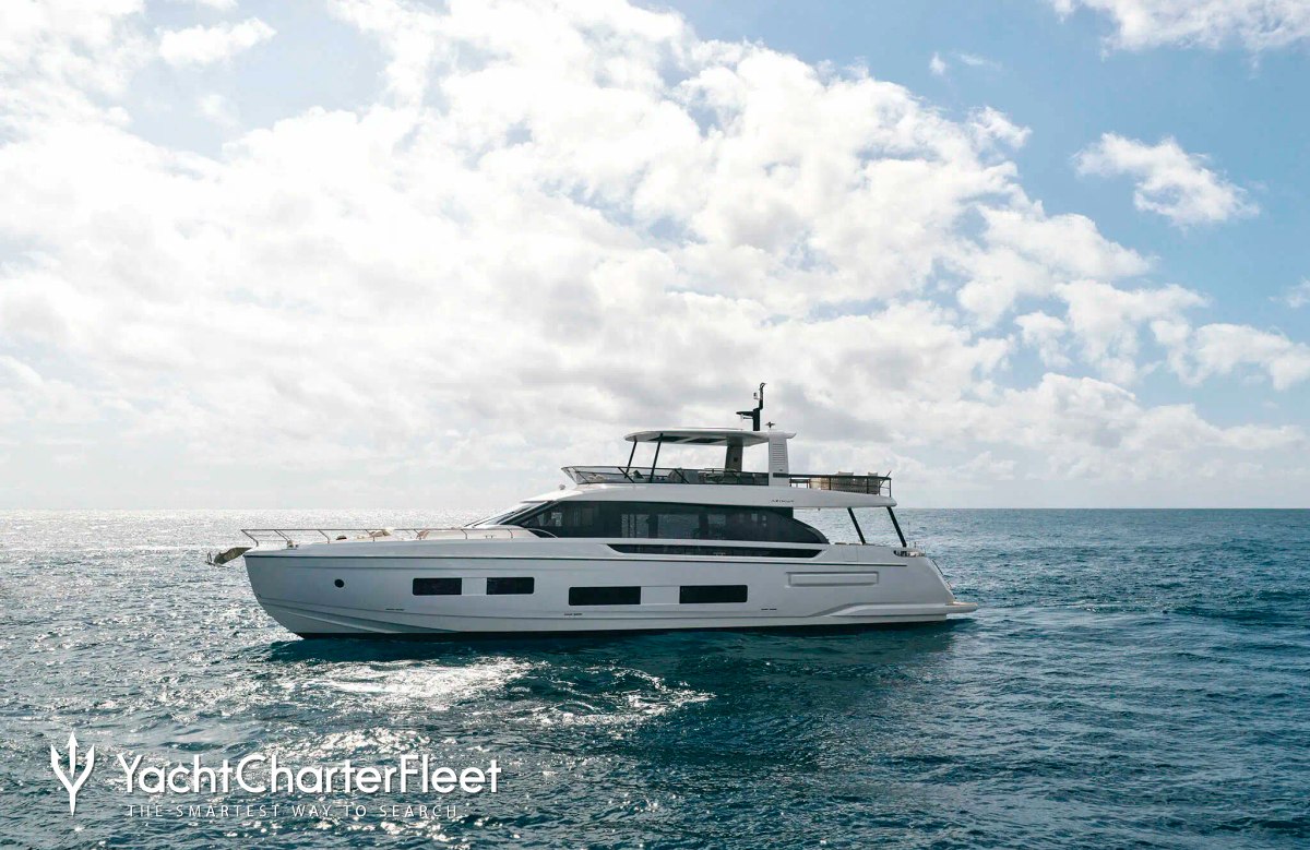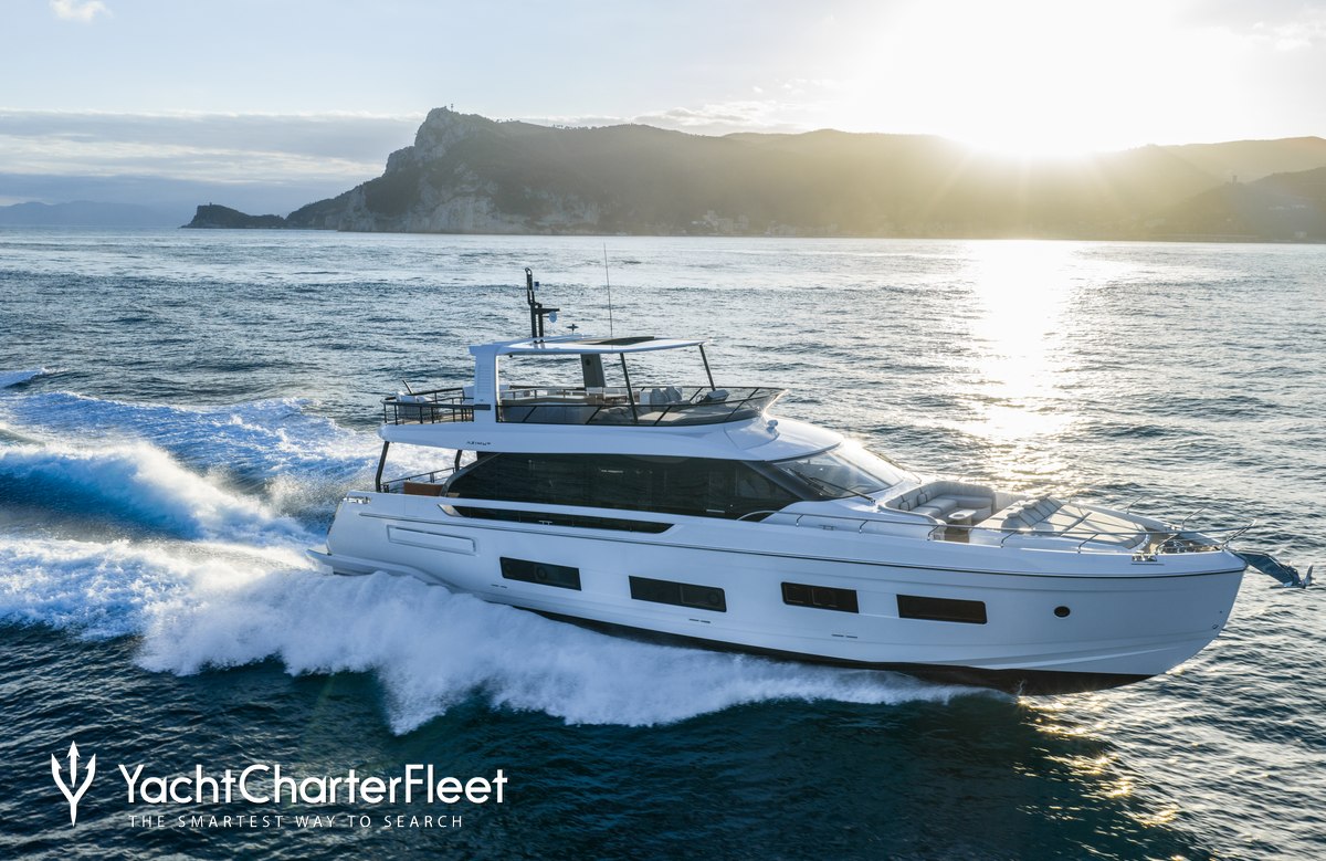 The 24.79m/81'4" motor yacht 'Explora' offers the unmissable chance to charter a brand new superyacht, having only launched this year. Delivered by the Italian shipyard Azimut and featuring interior styling by Fabio Fantolino she can comfortably accommodate up to 8 guests in 4 cabins.