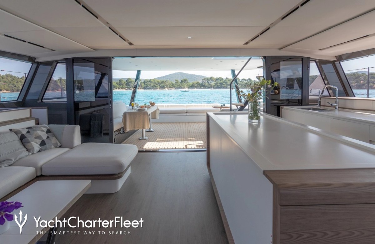 The 22m/72'2" catamaran yacht 'Wonderful' is an excellent new superyacht for the luxury charter market. Delivered by shipyard Gunboat she can comfortably accommodate up to 8 guests in 4 cabins.