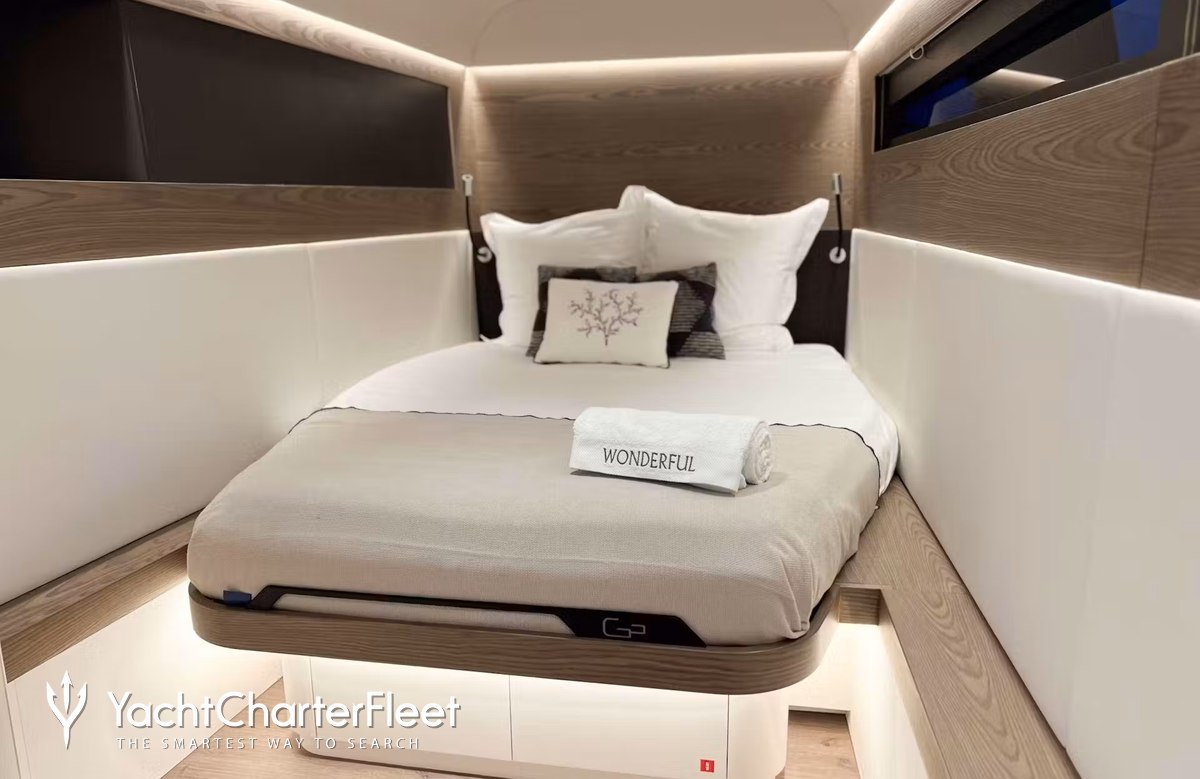 Built in 2023, Wonderful offers guest accommodation for up to 8 guests in 4 suites. She is also capable of carrying up to 3 crew onboard to ensure a relaxed luxury yacht charter experience.