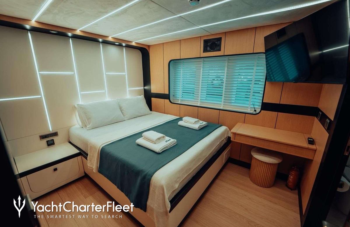 Beluga offers guest accommodation for up to 12 guests in 5 suites comprising a master suite, two VIP cabins, one double cabin and one twin cabin. She is also capable of carrying up to 4 crew onboard to ensure a relaxed luxury yacht charter experience.