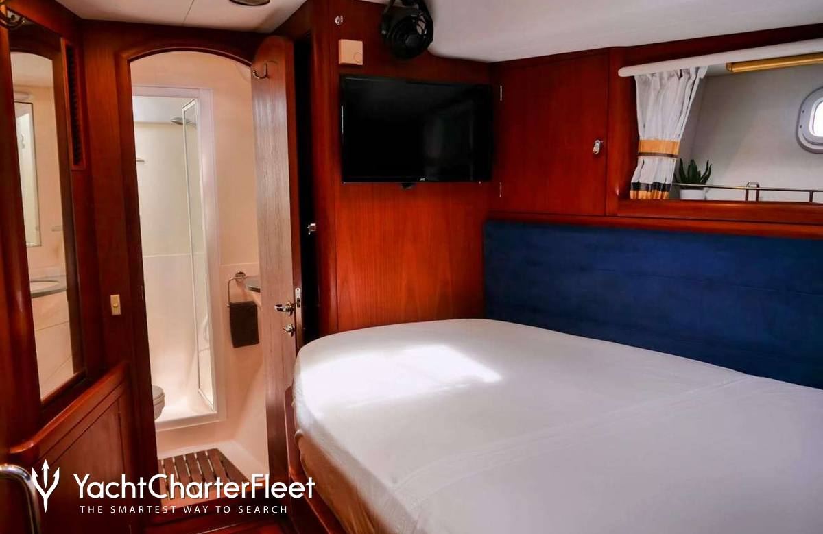 Built in 2003, Elvis Magic offers guest accommodation for up to 6 guests in 3 suites comprising a master suite, one double cabin and one twin cabin. She is also capable of carrying up to 2 crew onboard to ensure a relaxed luxury yacht charter experience.