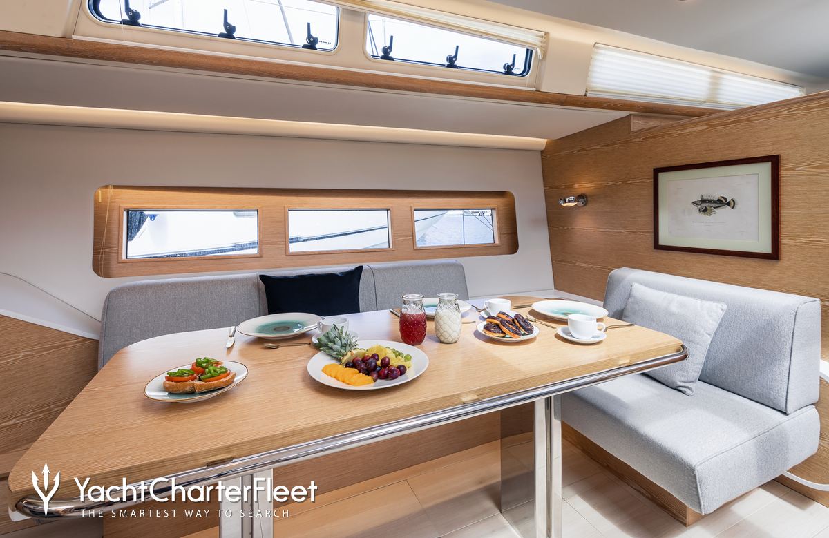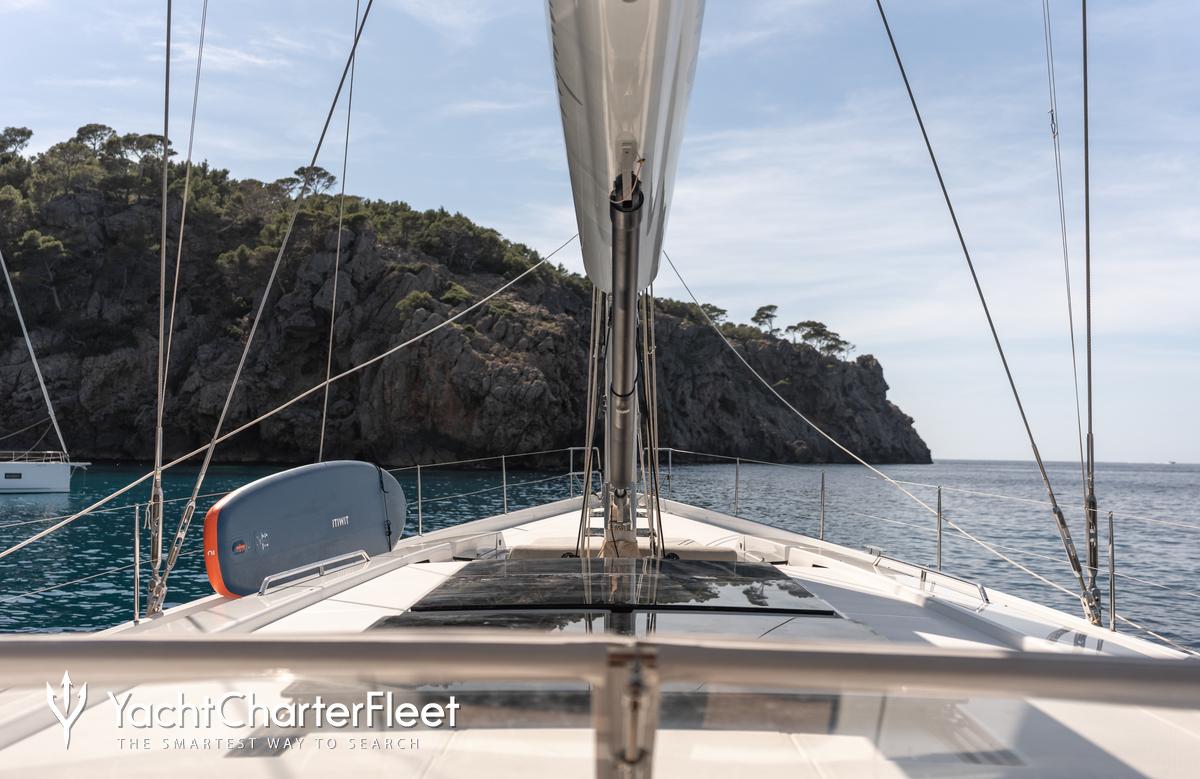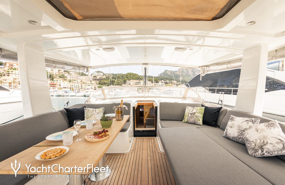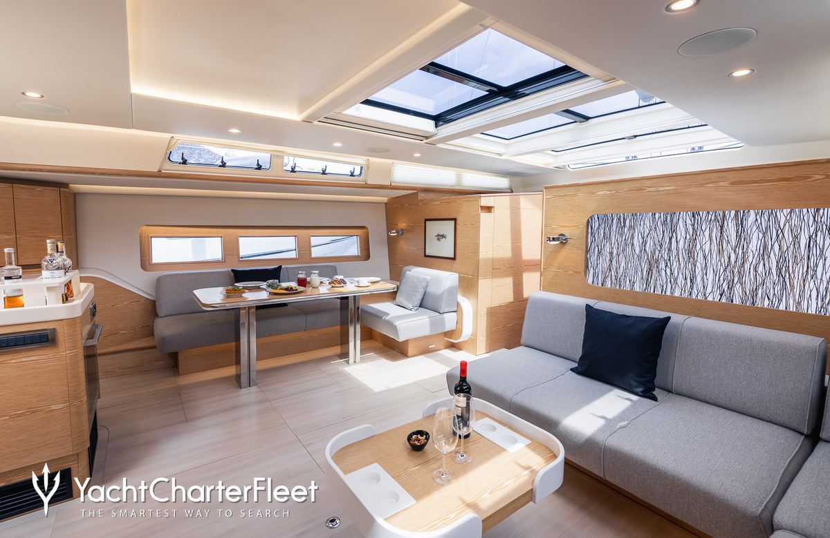 The interior impresses with its open spaces and natural light. The panoramic saloon invites you to relax with sea views, while the fully equipped galley allows you to prepare meals as if you were at home.