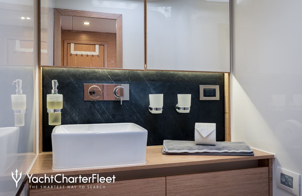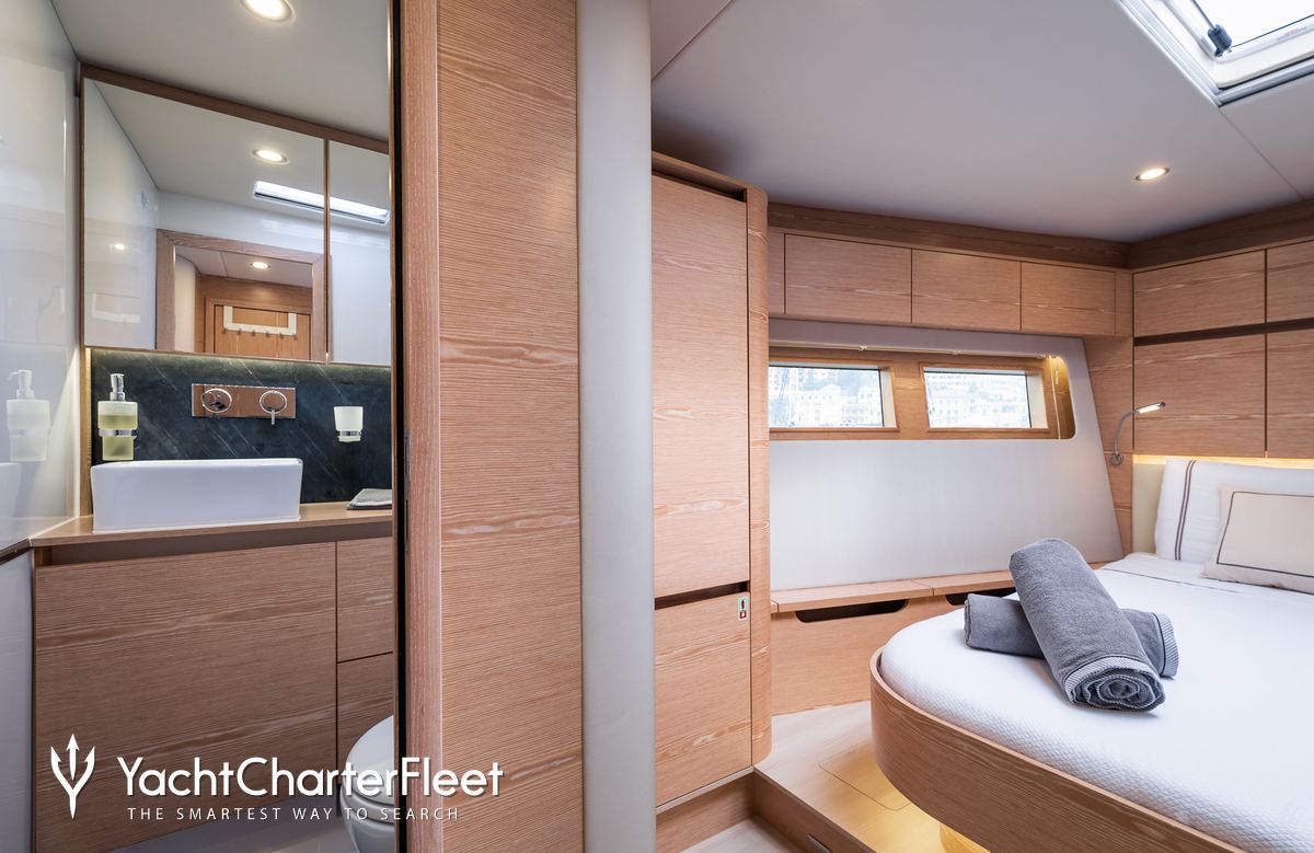 Families will particularly love Agarimo Six thanks to her child-friendly setup. Built in 2017, She offers guest accommodation for up to 6 guests with a layout comprising a master suite and one double cabin. There are 4 beds in total, including 1 queen, 1 double, 2 singles and 2 pullmans. She is also capable of carrying up to 2 crew onboard to ensure a relaxed luxury yacht charter experience.