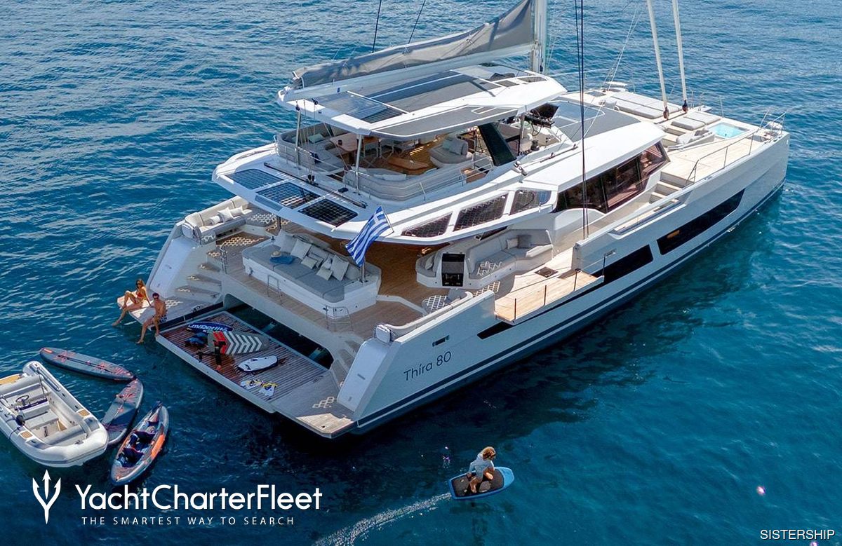 This document is not contractual. The yacht charters and their particulars displayed in the results above are displayed in good faith and whilst believed to be correct are not guaranteed. YachtCharterFleet.com does not warrant or assume any legal liability or responsibility for the accuracy, completeness, or usefulness of any information and/or images displayed. All information is subject to change without notice and is without warranty. Your preferred charter broker should provide you with yacht specifications, brochure and rates for your chosen dates during your charter yacht selection process. Starting prices are shown in a range of currencies for a one-week charter, unless otherwise indicated.